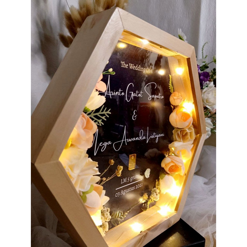 Mahar Pernikahan Double Flower Frame 3D - Mahar Nikah Bunga Mawar - Bingkai Mahar Rustik - Simbol Mahar Pernikahan Hexagonal by Ferame Galeri - Arinto13