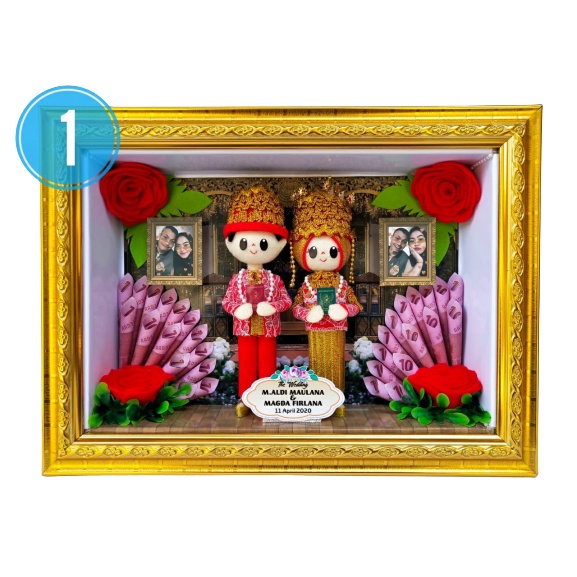 Mahar Unik Pengantin Adat Palembang Frame 3D 21x30cm Bonekaflanelku