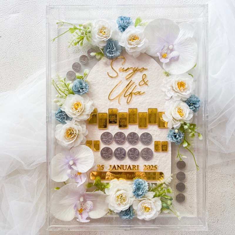Mahar akrilik / mahar tetes air / mahar acrylic brush / mahar transparan / bingkai mahar / mahar pernikahan / mahar rustik / mahar rustic / mahar kekinian / mahar bunga / mahar anggrek / wedding gift / kado nikah / hadiah wisuda