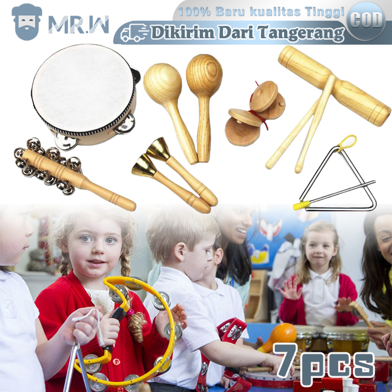 Mainan Alat Musik Drum 7pcs Alat Musik Perkusi Anak Portable Alat Perkusi Children Hand Percussion Instruments Kit
