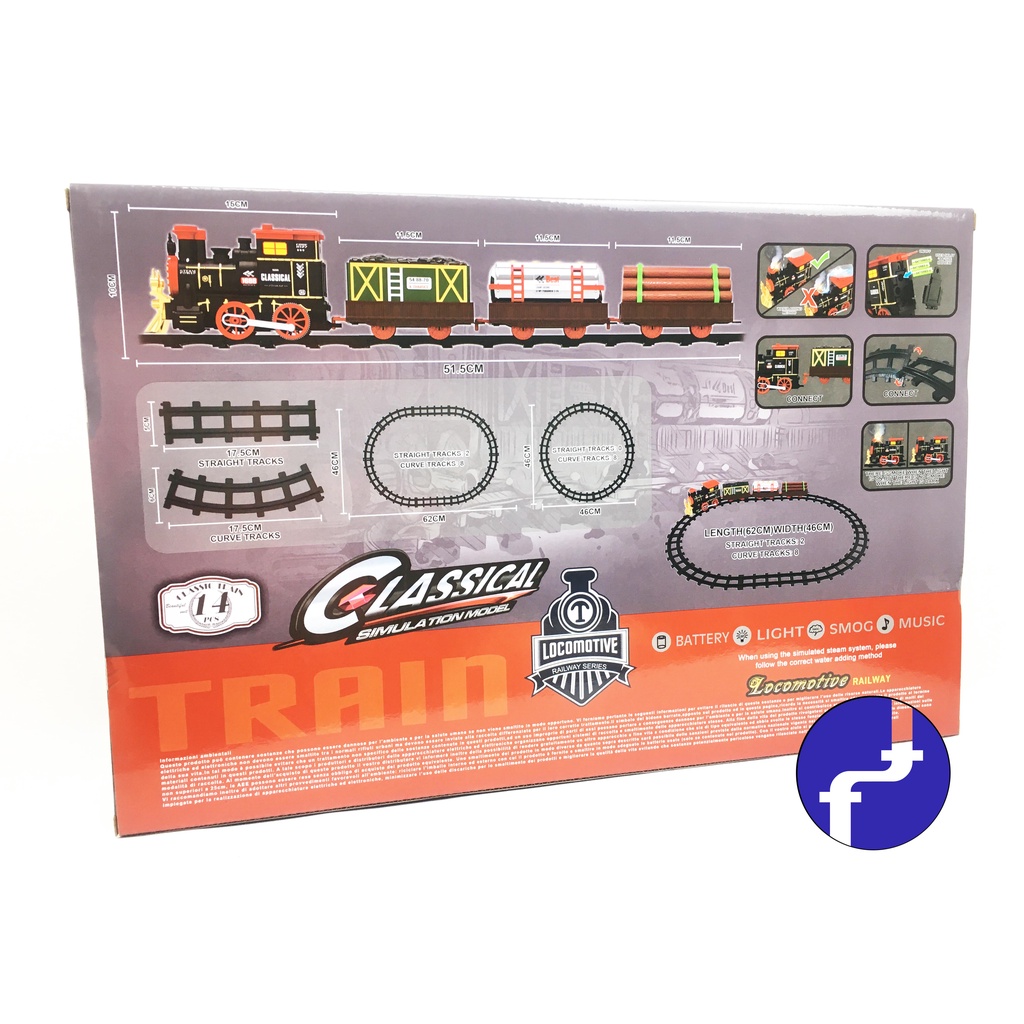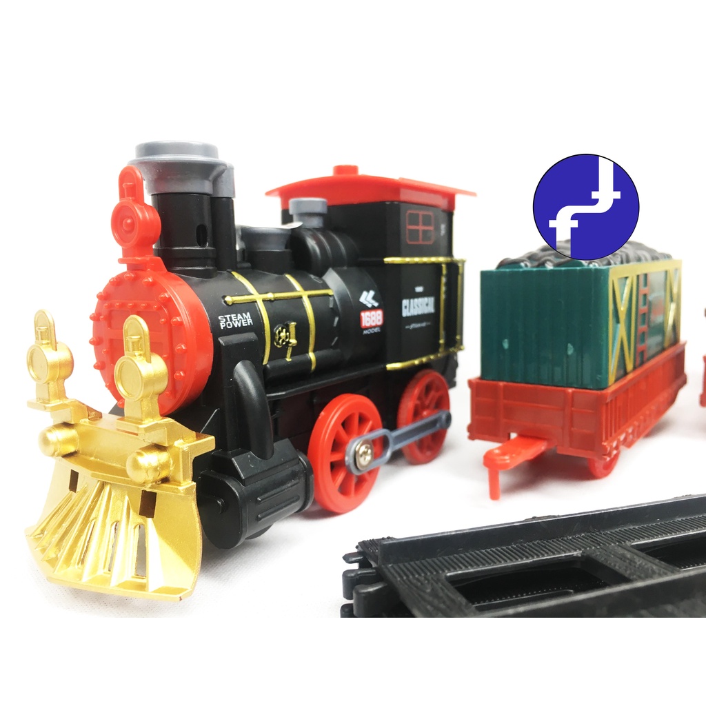 Mainan Anak Kereta Api Rail King Classical Kereta Uap Jadul 14 pcs Locomotive Tenaga Uap