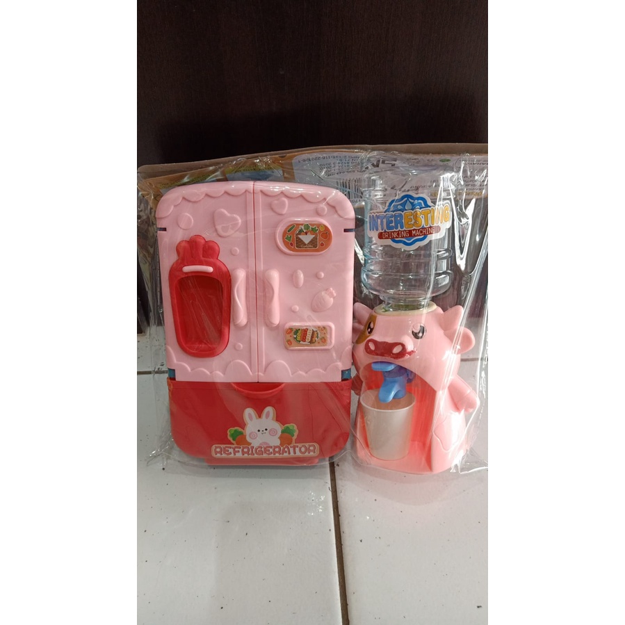 Mainan Anak Kulkas dan Dispenser Galon set karakter /Dapur Mini Masak / kitchen set karakter