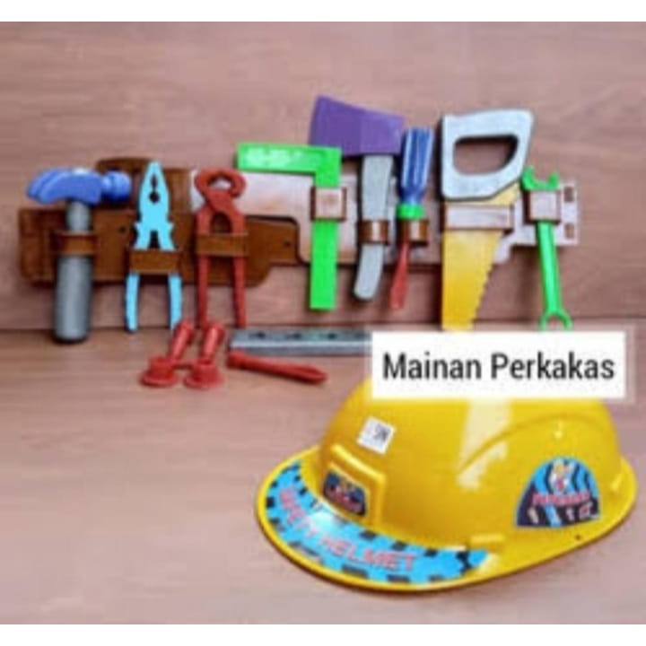 Mainan Anak Laki Laki Helm Pertukangan Tools Set Tool Perkakas mainan helm anak mainan alat tukang