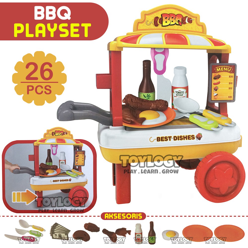 Mainan Anak Masak Masakan Barbeque Barbecue Set BBQ Playset Panggangan Cart Gerobak