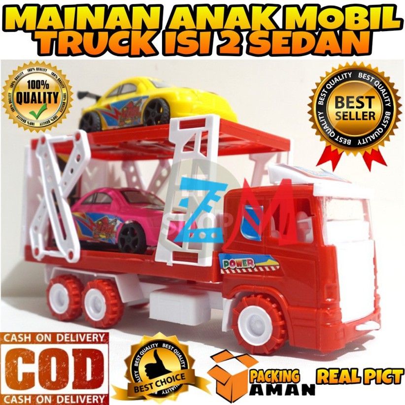 Mainan Anak Mobil Mobilan Truk Isi 2 Sedan - Mainan Truk Angkut Mobil