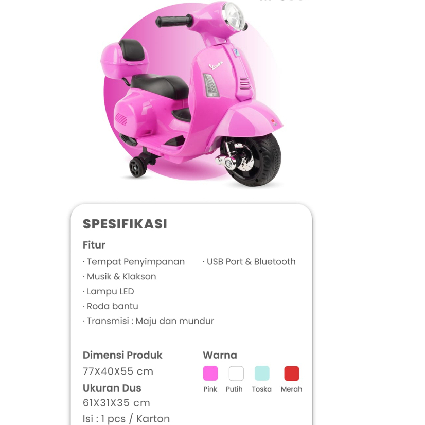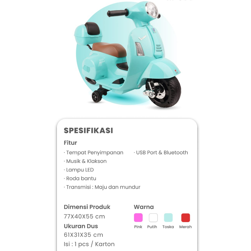 Mainan Anak Motor Aki Vespa M 399 - PMB Toys Motoran Mini listrik bisa di charger unisek