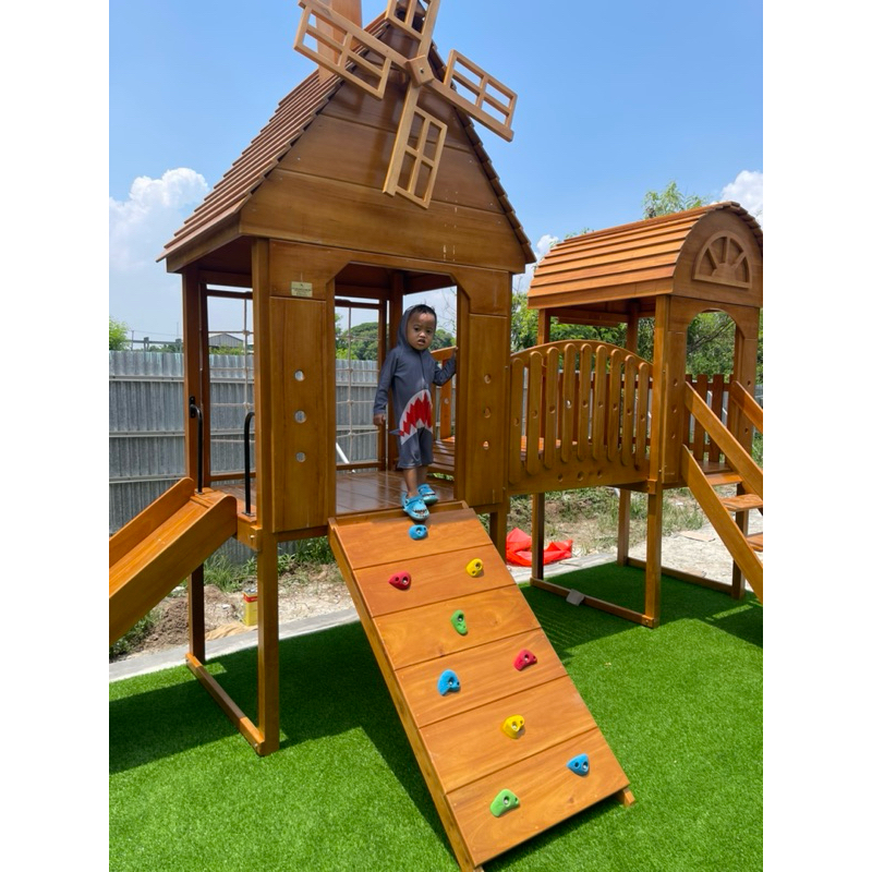 Mainan Anak Playground Indoor Outdoor Brakiasi Rumah Mini Kayu Mahoni Kuat Seluncuran Playhouse