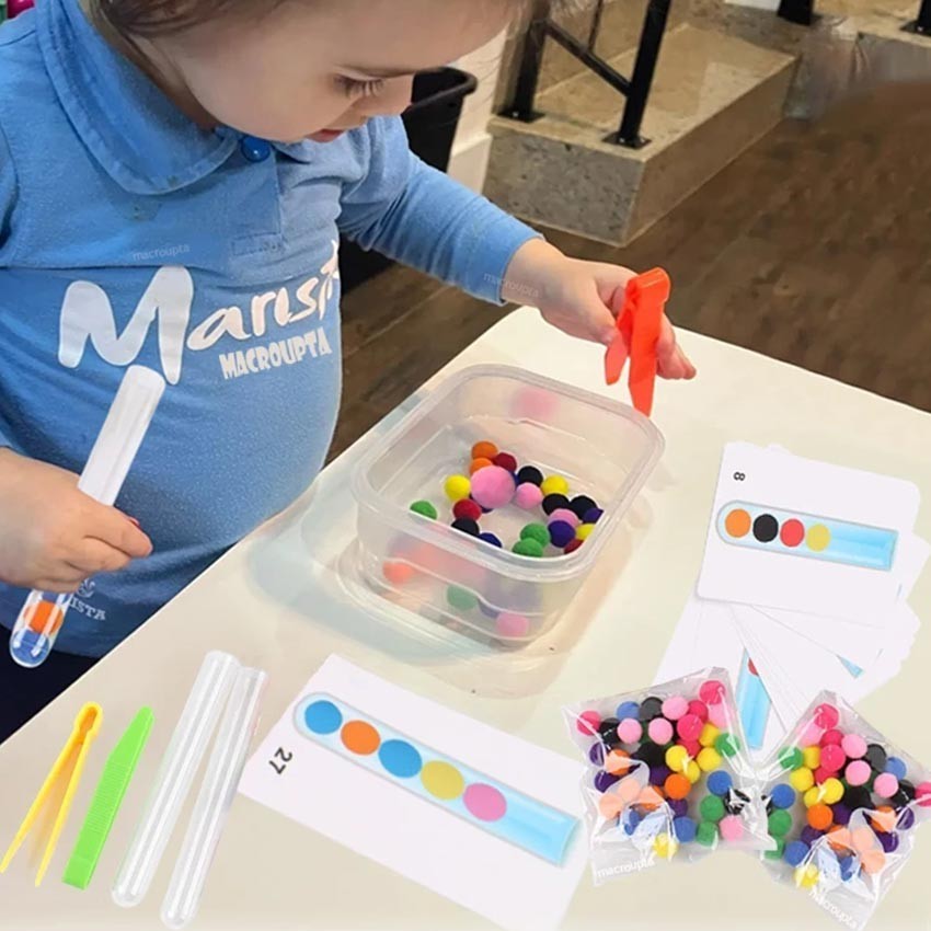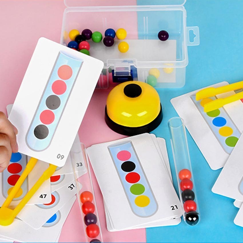 Mainan Anak Test Tube Clamp Ball / Test Tube Clip Ball Clamp Ball Colour Bead Tube Wooden Toy Montessori