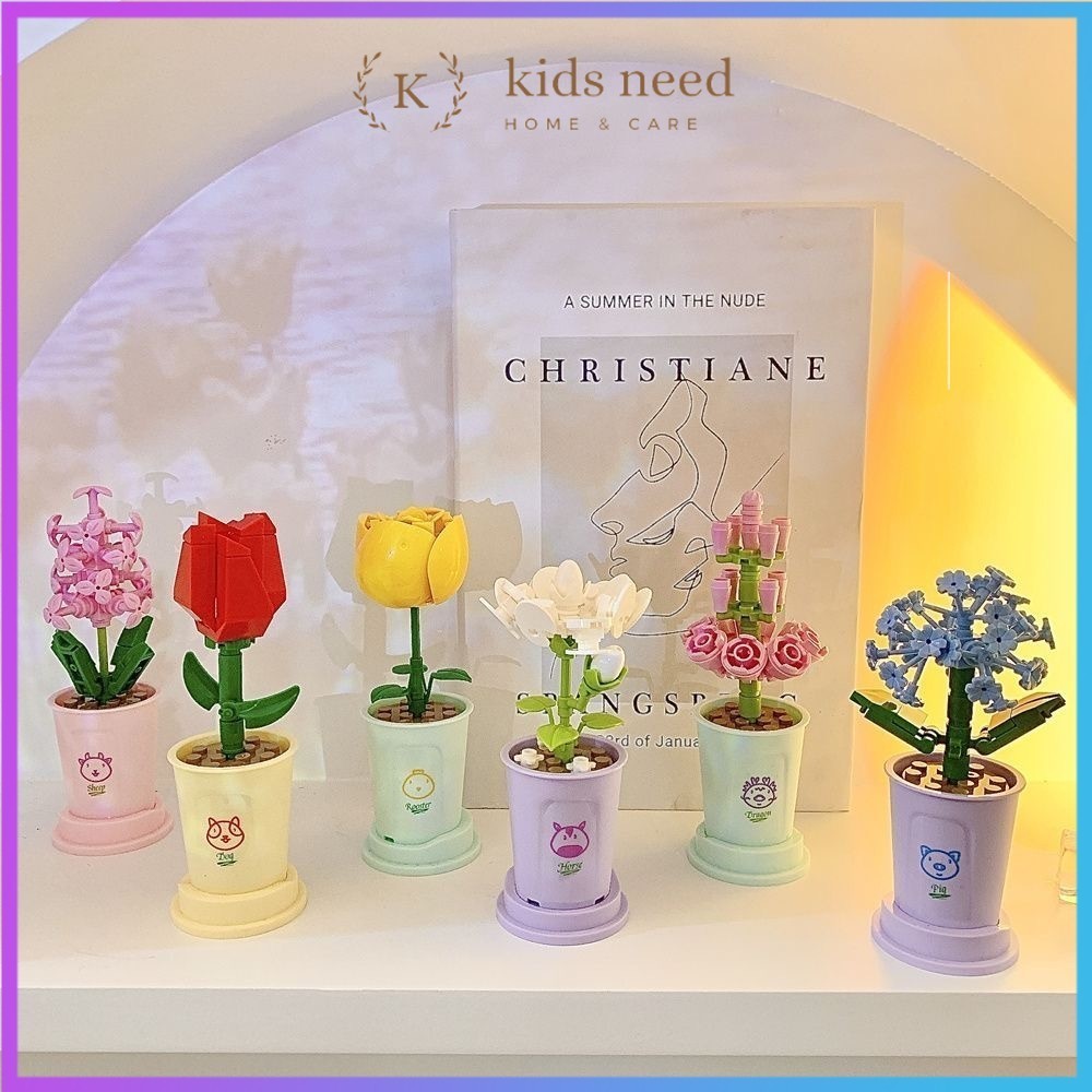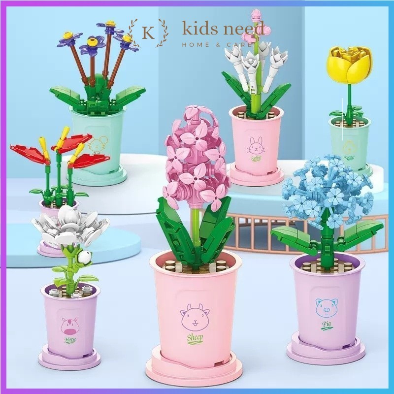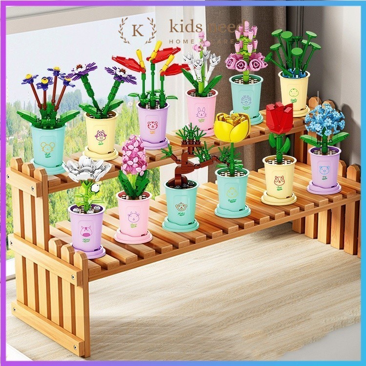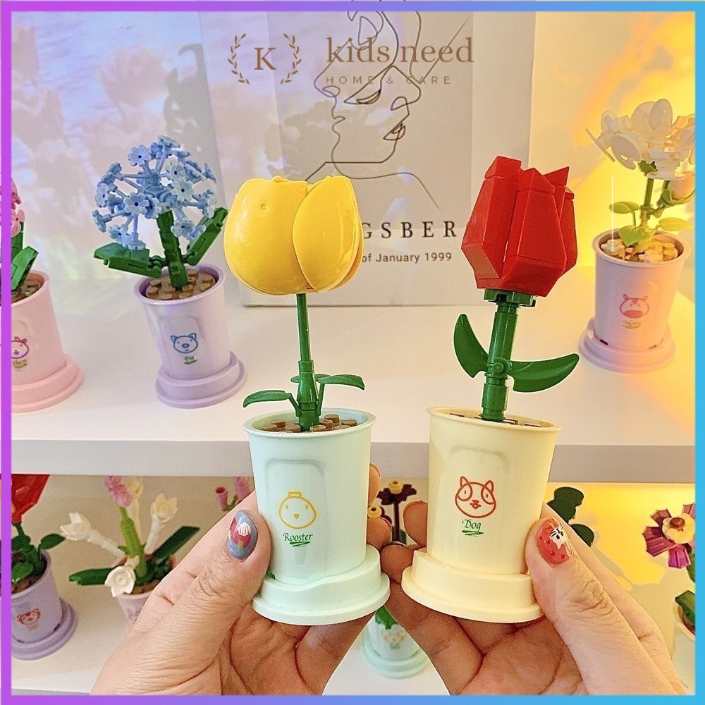 Mainan Balok DIY Buket Bunga / Balok Flowers Bunga Pot Tanaman Mini Blok Bangunan Mainan Edukatif DIY Balok Bricks Buket/Lucky Flower Bouquet Blok Bangunan Partikel Tanaman Pot Kecil Buket