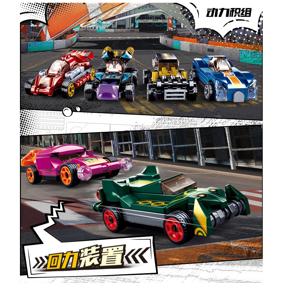 Mainan Balok Sluban Mobil Balap Power Bricks - Pull Back Car Mainan Anak Laki Laki