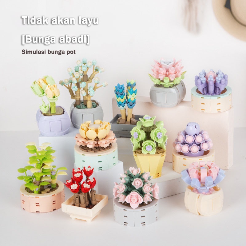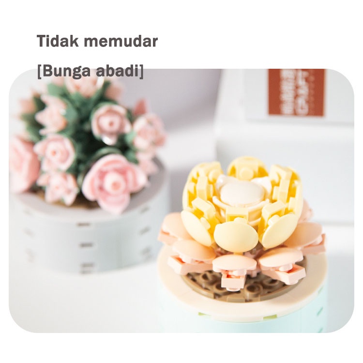 Mainan Balok Susun Bunga Abadi Flowers Pot Mainan Edukasi Mainan Anak Perempuan 3D Puzzle Nano Building Blok Hadiah Bunga Dekorasi Rumah