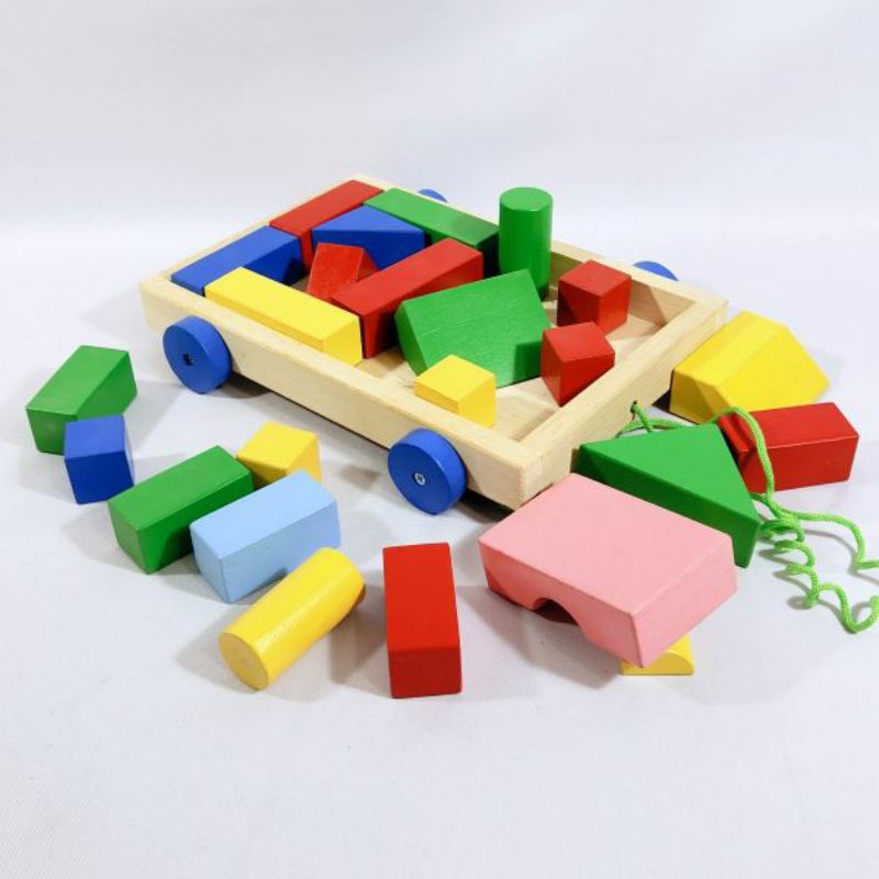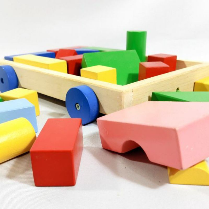 Mainan Balok Susun Mobil Kayu Car Block Wooden Toys Montessori