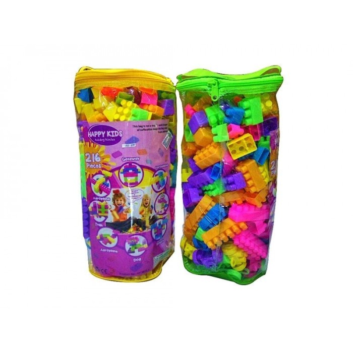 Mainan Bayi Happy Kids Block Edukasi susun balok tas Besar isi 216 pcs Mainan Anak Modern Terlaris E