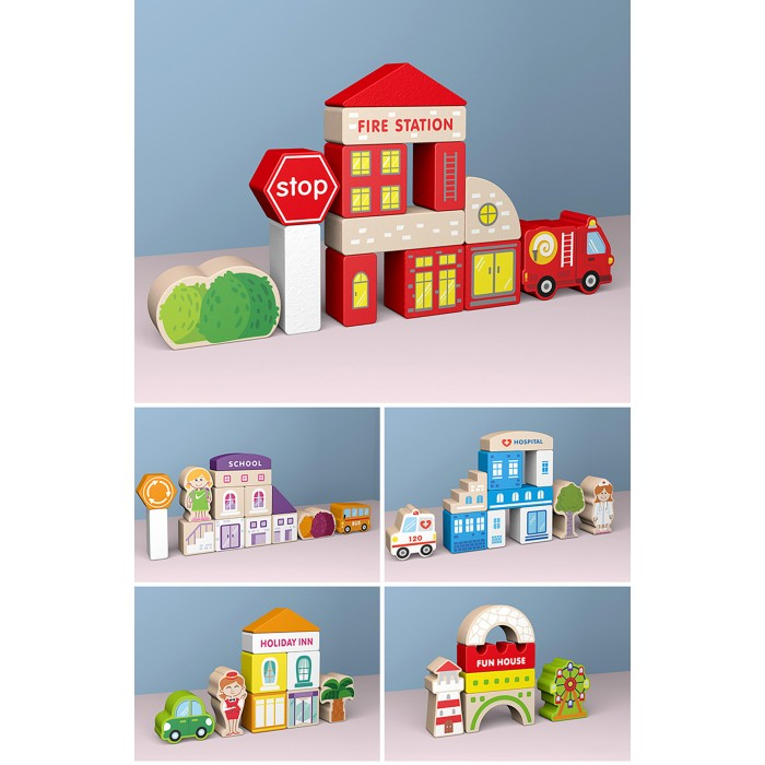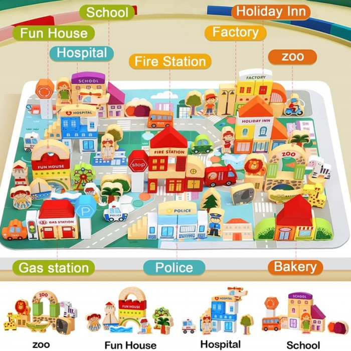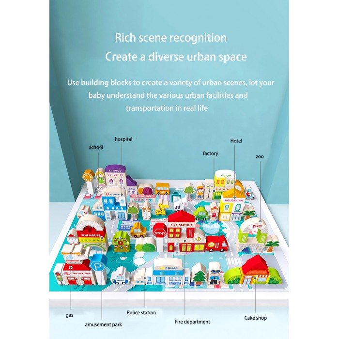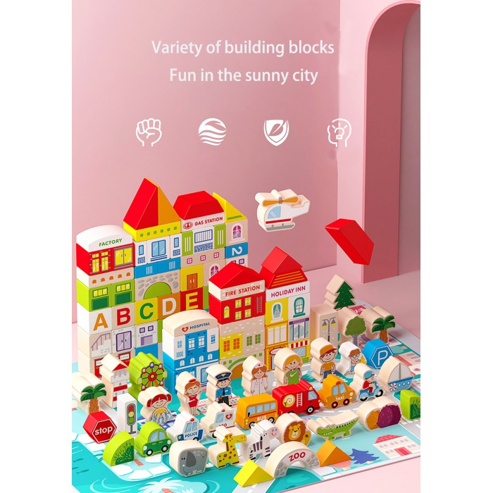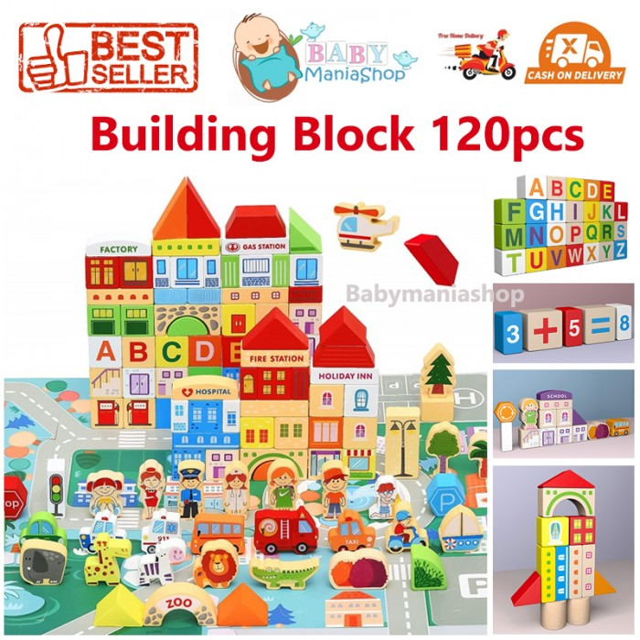 Mainan Blok Bangunan 120Pcs Dengan Matras Kayu Building Blocks Set Mainan Bangunan Anak Belajar Huruf Angka Kreatif