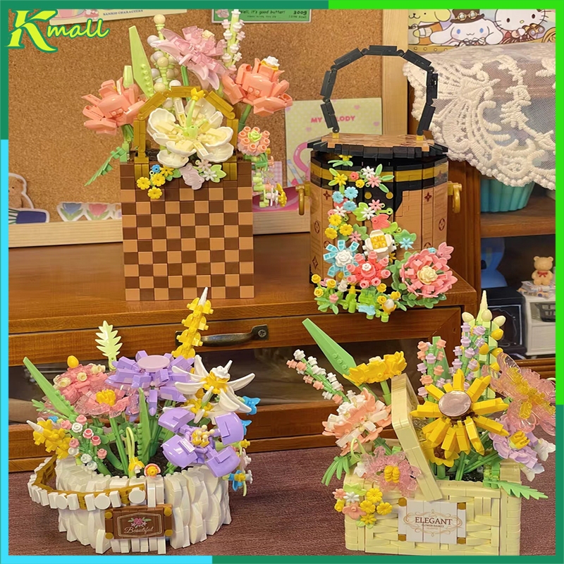 Mainan Blok DIY Flower Block Buket Bunga Mainan Block Bricks Mini Mainan Edukatif Balok Susun Mainan Kreatif