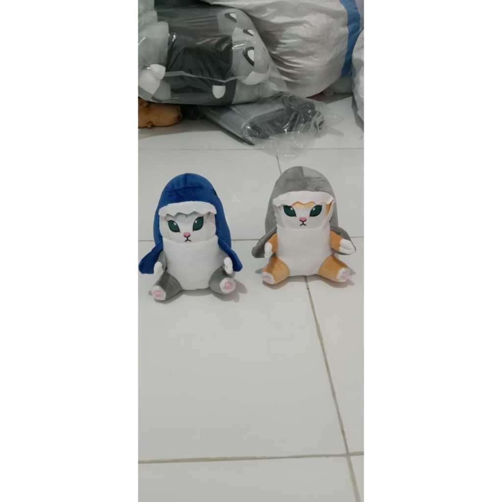 Mainan Boneka Kawaii Kucing COSTUM hiu Bahan Halus bersni / Boneka Karakter Kucing Lucu