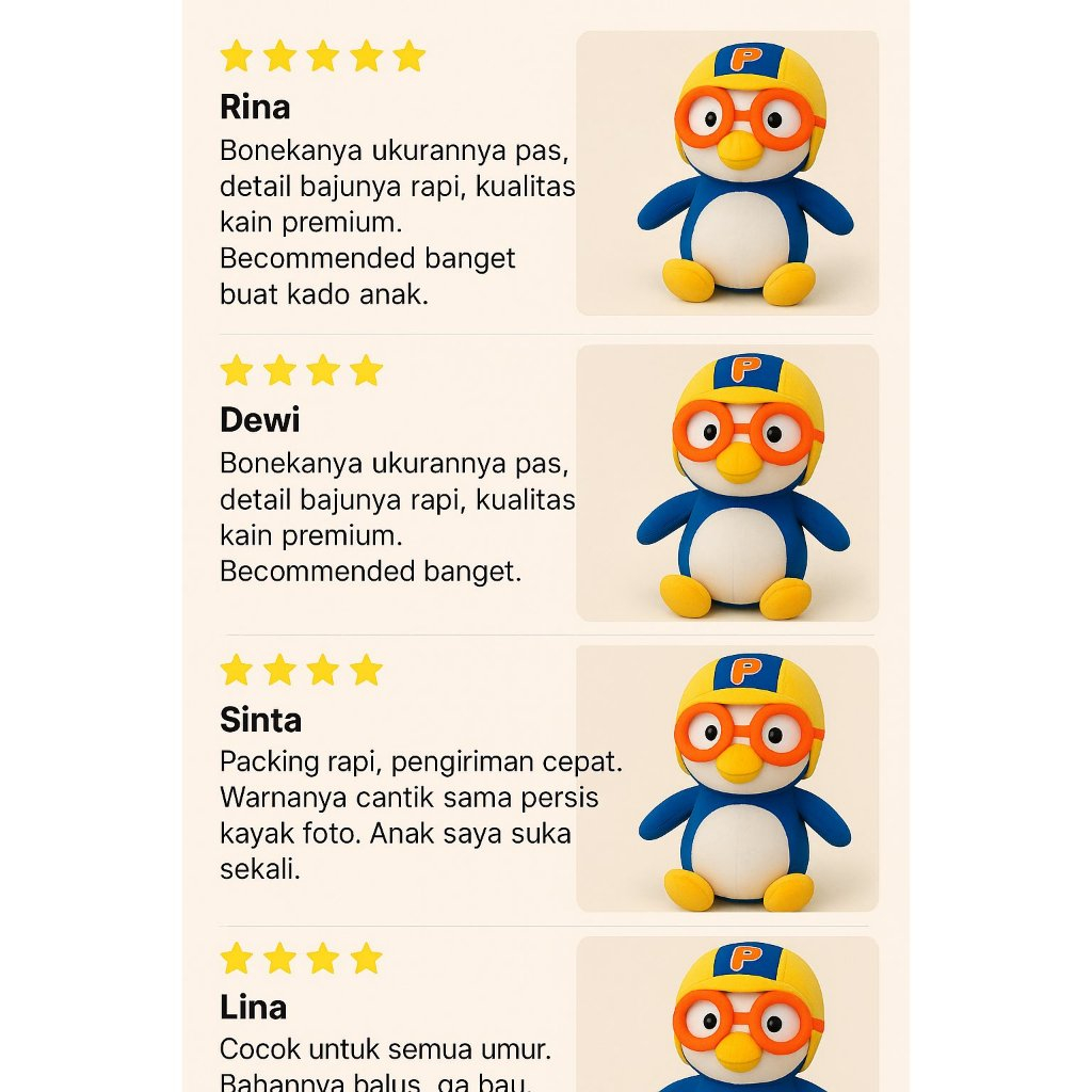 Mainan Boneka Pororo Korea Cartoon Little Penguin Petty Eddy Crong Loopy Poby Plush Toy Doll Kado Boneka Premium Kualitas Import