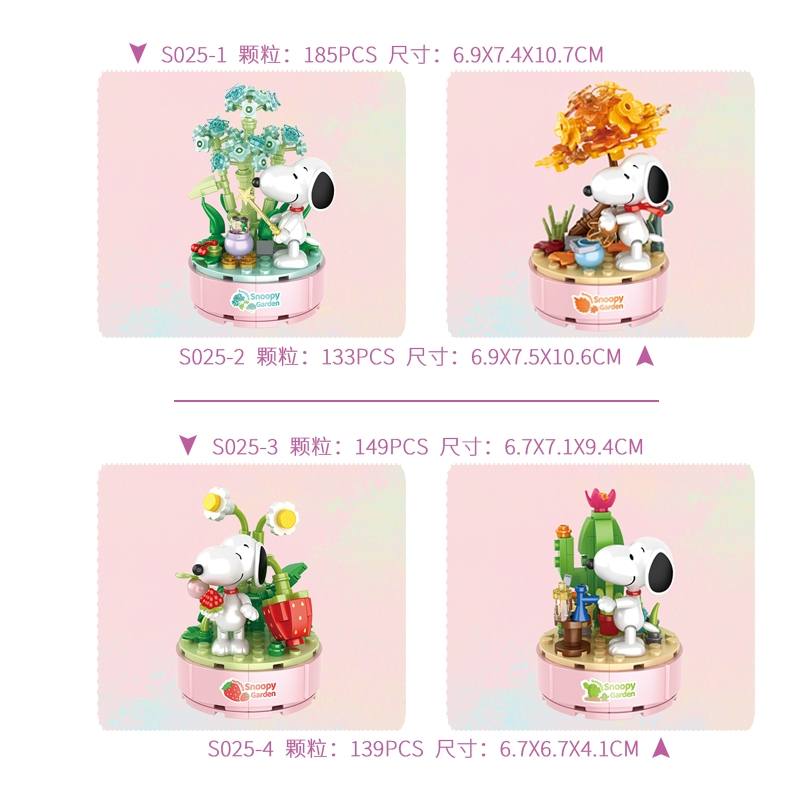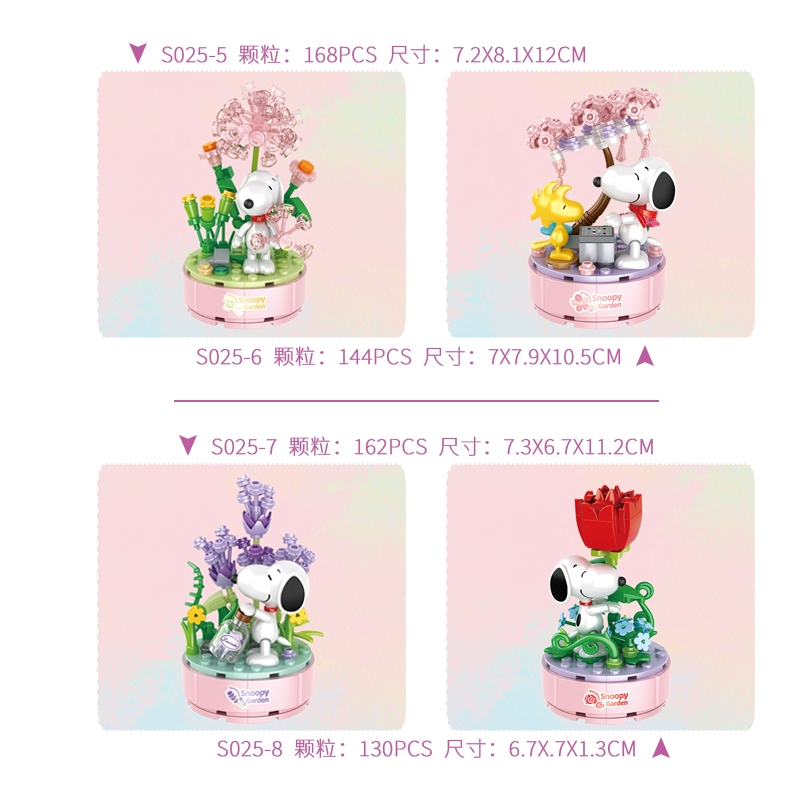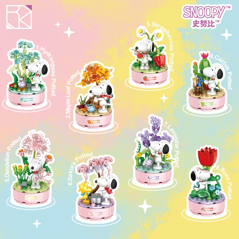 Mainan Brick Peanuts Snoopy Blind Box Flowers Series S025