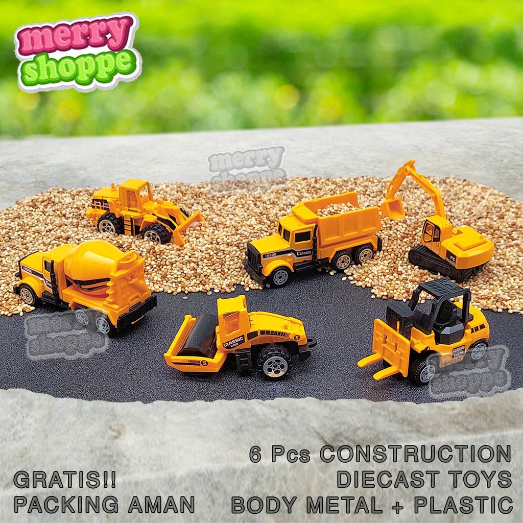 Mainan Diecast Body Besi Mobil Alat Berat Konstruksi Beko Excavator Molen Fork Lift Dump Truck 6 Pcs