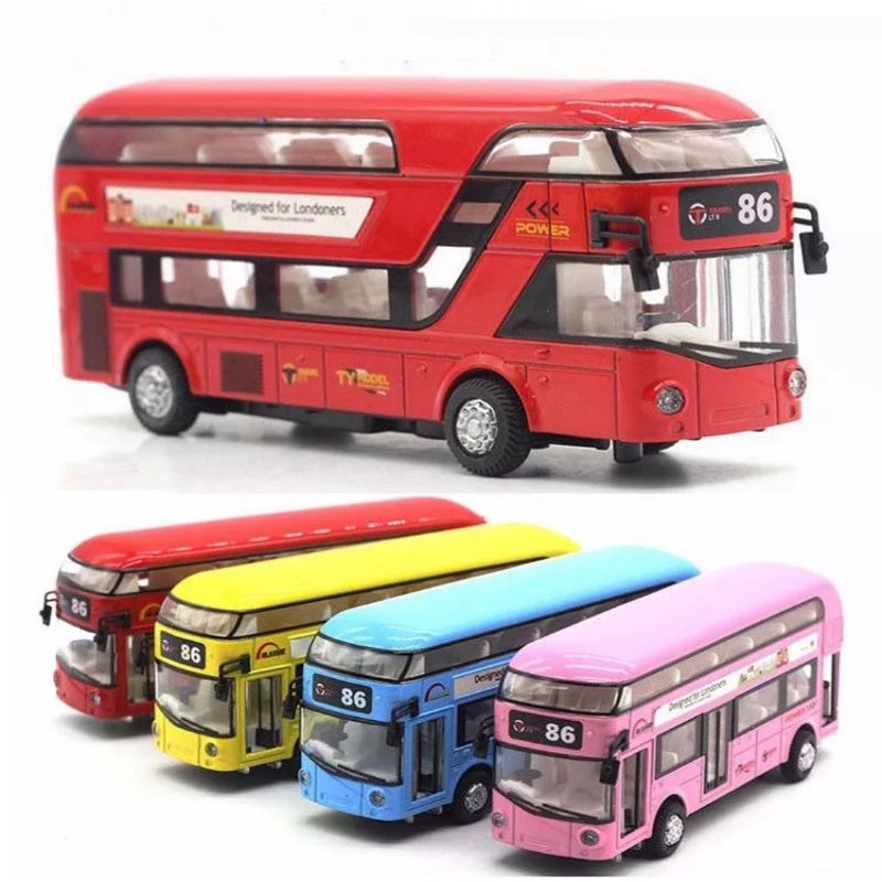 Mainan Diecast Bus London Miniatur Diecast Mobil Mobilan Bis Tingkat Luxury Bus