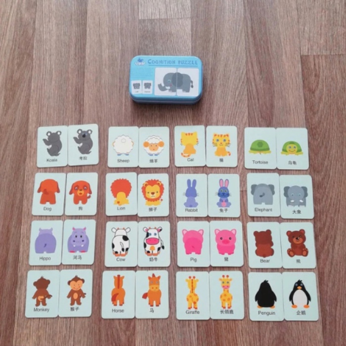 Mainan Edukasi Anak Animal Puzzle Card Matching Game Kartu Gambar Hewan