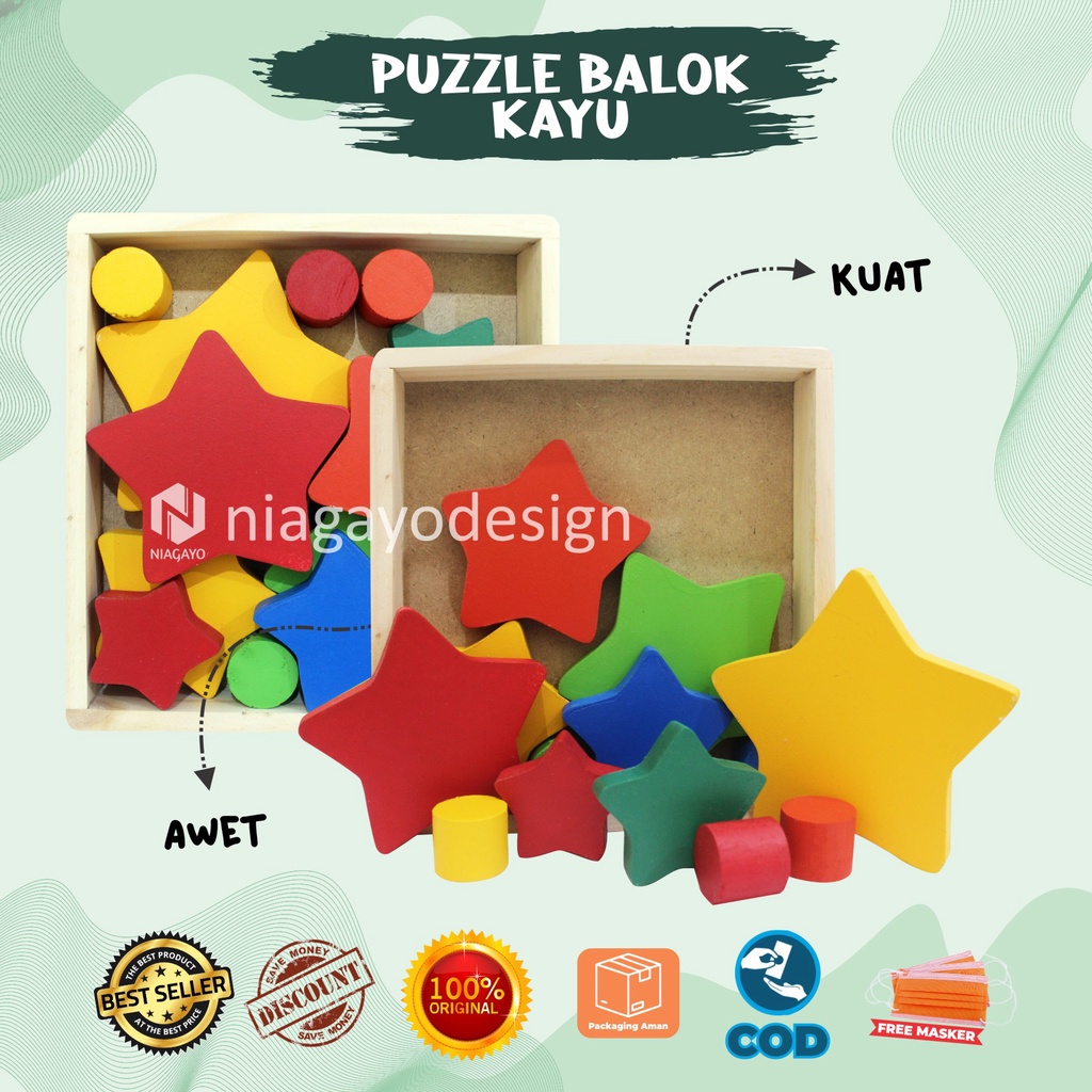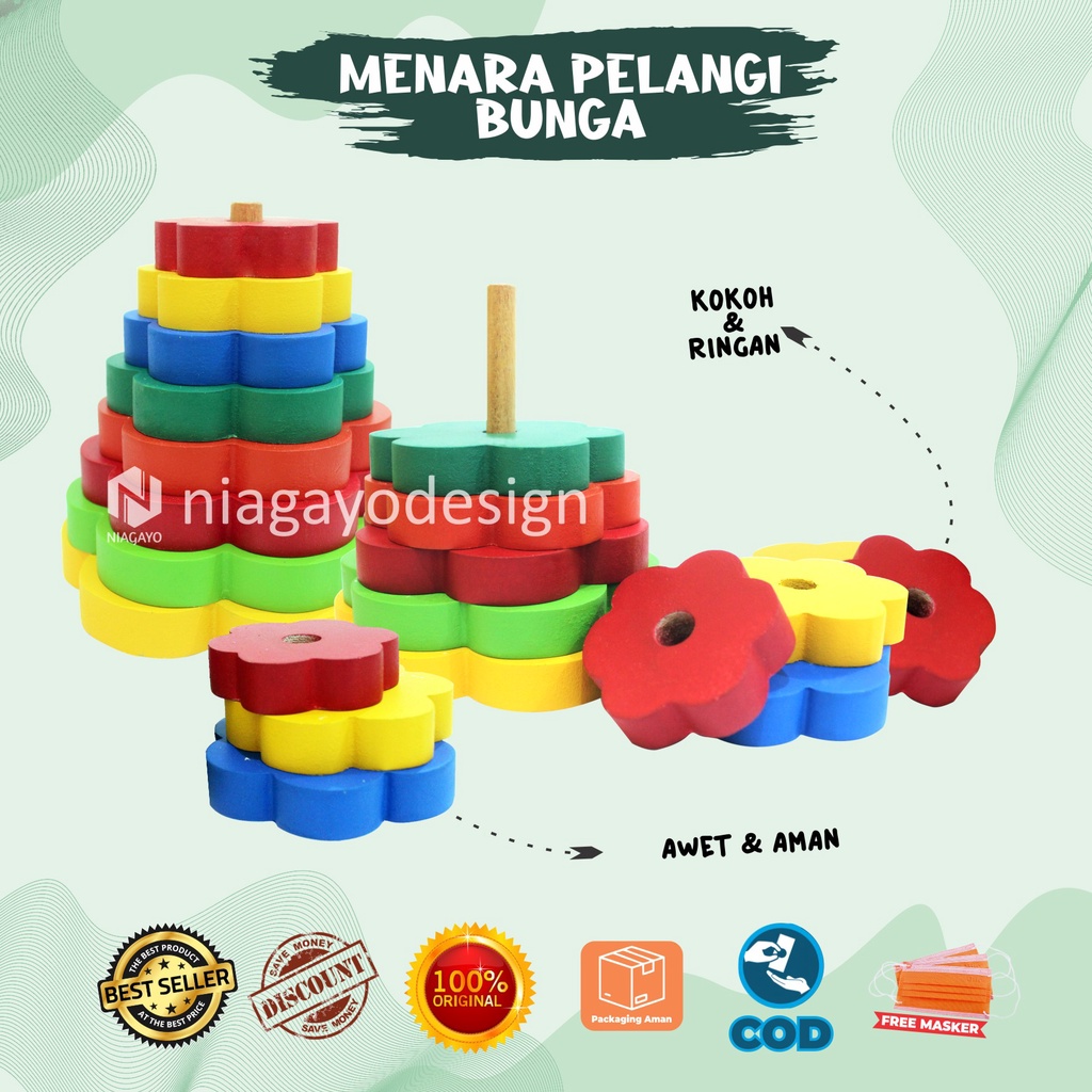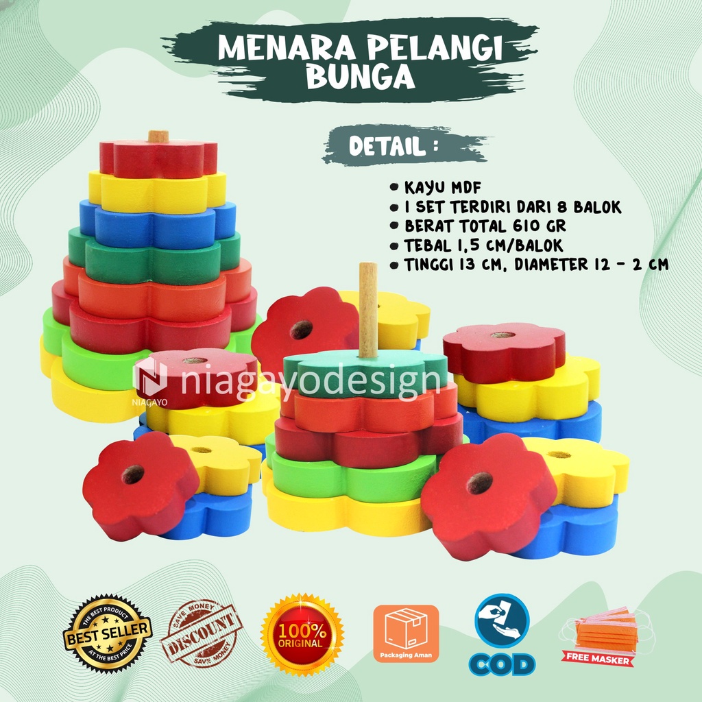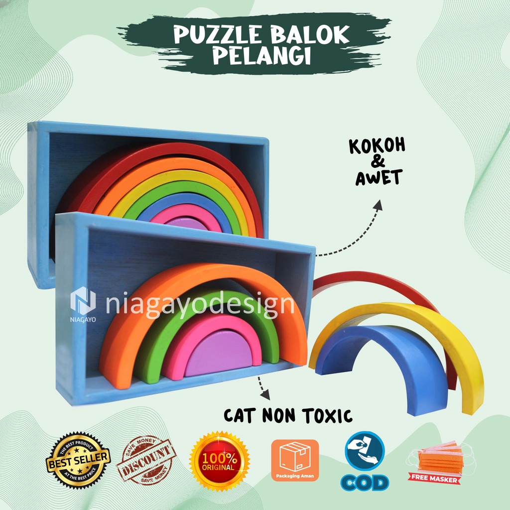 Mainan Edukasi Anak Balok Kayu / Mainan Kayu Edukasi Anak TK Paud Merana Bunga Puzzle Huruf Profesi Balok Pelangi