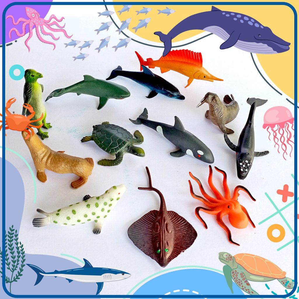 Mainan Edukasi Aneka Binatang Hewan Laut Lumba Lumba / Ikan Paus / Pinguin / Anjing laut Animal Sea World Bahan Rubber (Karet)