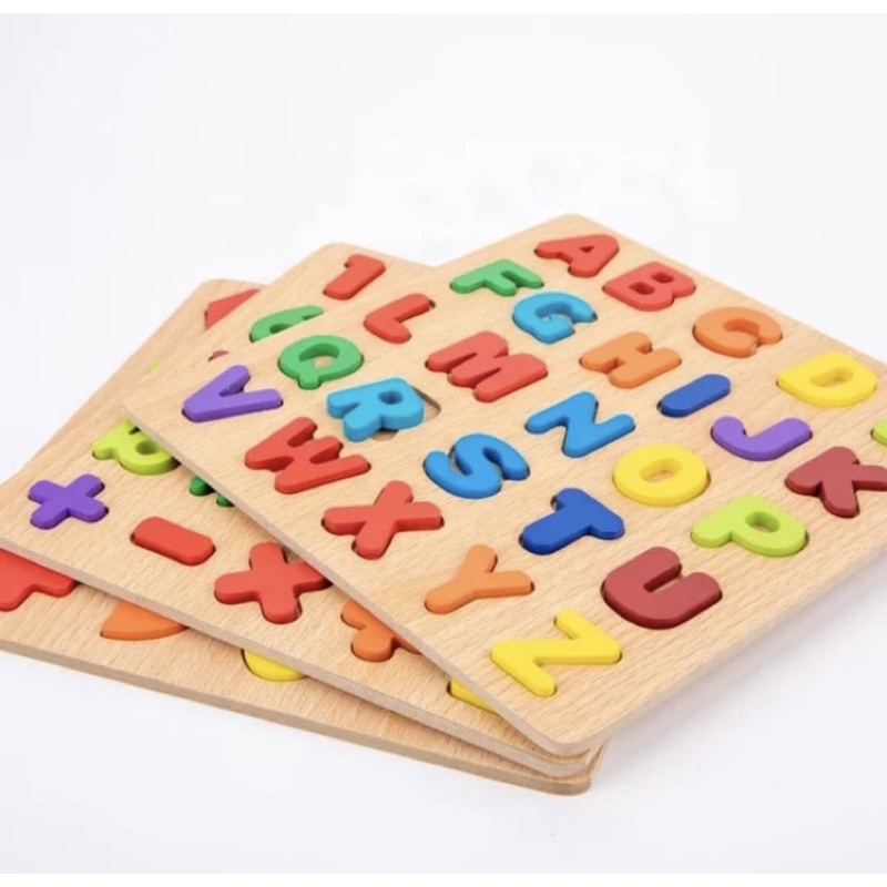 Mainan Edukasi Kayu Puzzle 3D Huruf Angka dan Bentuk Anak Belajar Mengenal Huruf Angka Aman