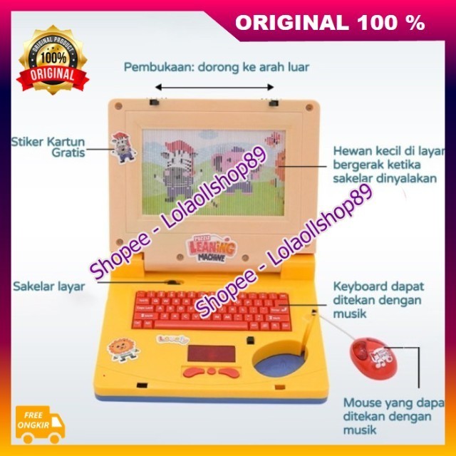 Mainan Edukasi Laptop Anak Layar Belajar Notebook Bayi Learning Machine Musik dan Gambar 100% ASLI ORIGINAL