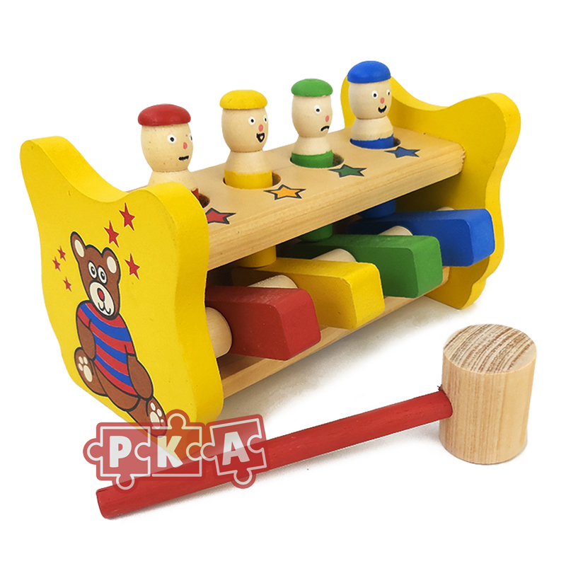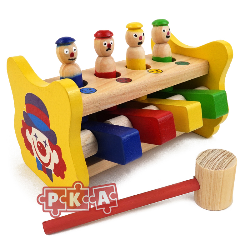Mainan Edukasi Palu Badut Kayu Pukul Ketok Balok Loncat Peluru Hammer