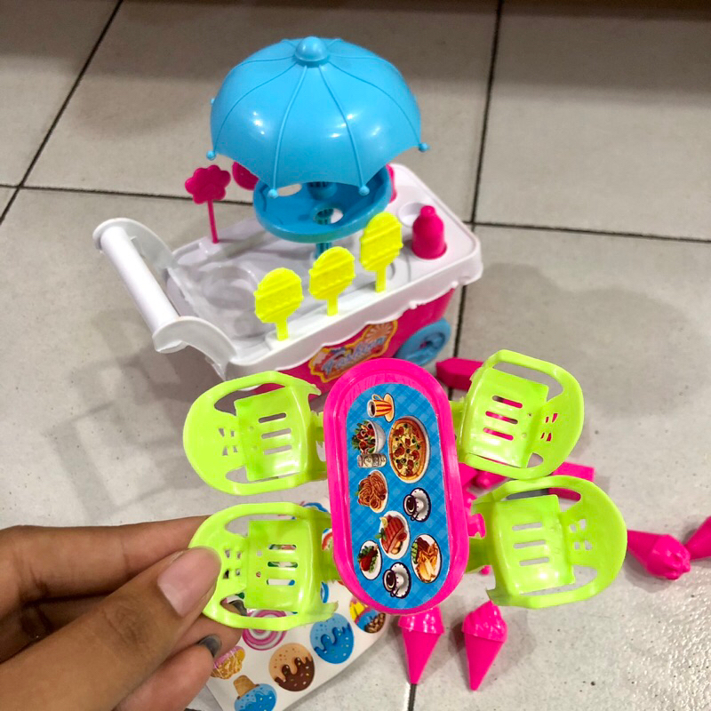 Mainan Gerobak Ice cream kecil anak, mainan Ice cream Gerobak Dorong stroler one house party