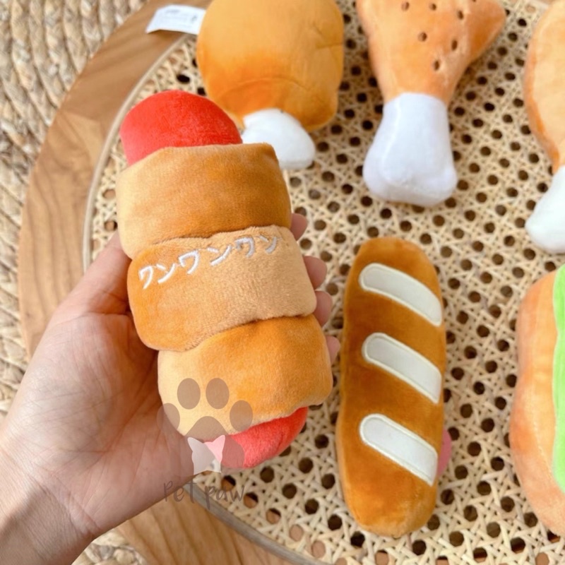 Mainan Gigitan Gigit Bunyi Anjing Kucing Pet Squeaky Toy Brunch Bread Edition Roti Premium Toy