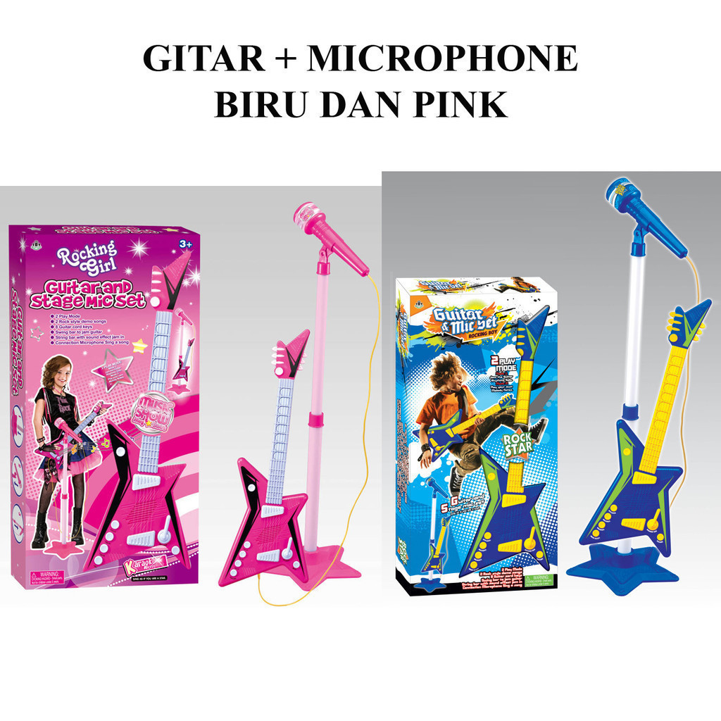 Mainan Gitar Dan Microphone Elektrik Guitar Rock Mainan Alat Musik Gitar Anak