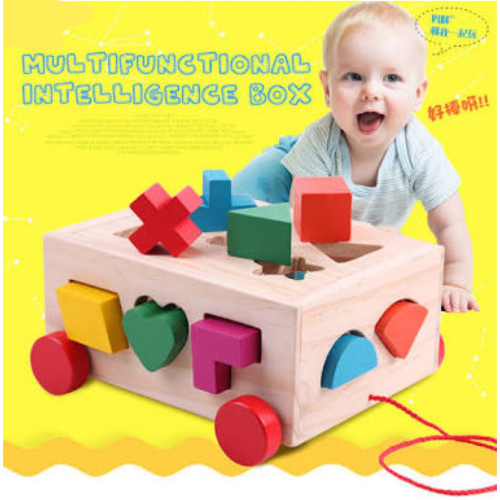 Mainan Kayu / Mainan Edukasi Shape Intelligence Box Wooden Car Shape Box