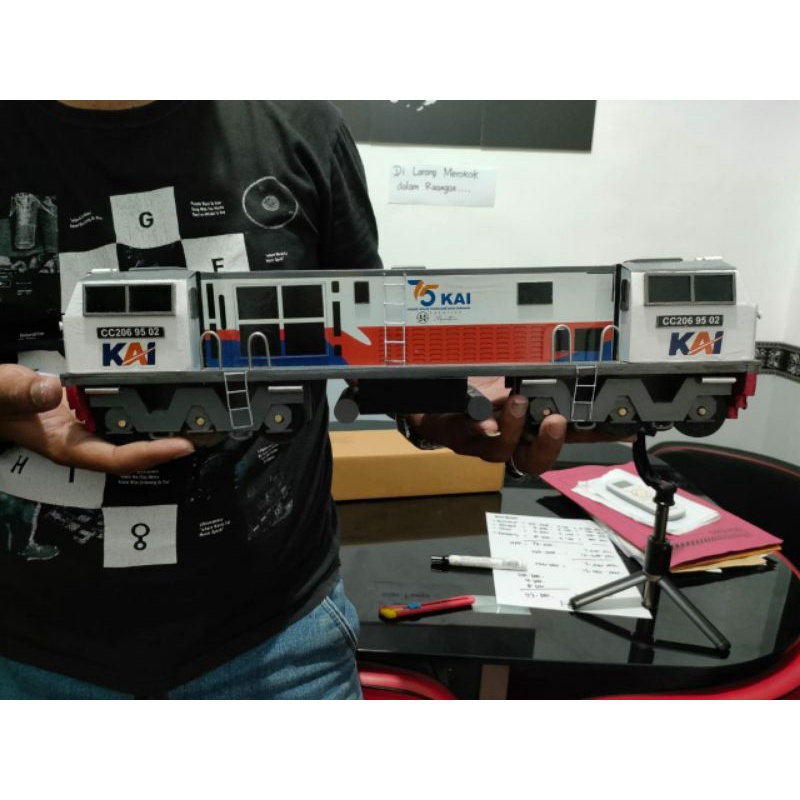 Mainan Miniatur Kereta Api Kayu Sidoarjo - Lokomotif CC 206 Livery 75Th KAI