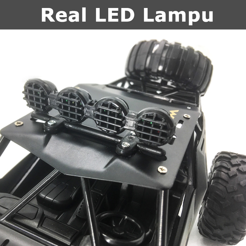 Mainan Mobil Remote Control 4WD dengan Lampu 1:12 RC Mobil Offroad Besar Bahan Alloy 2,4GHZ Remote