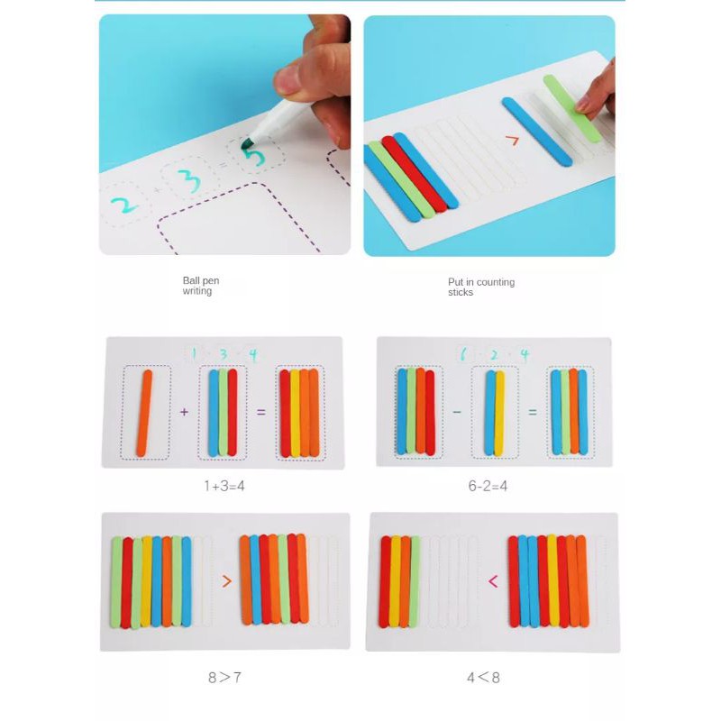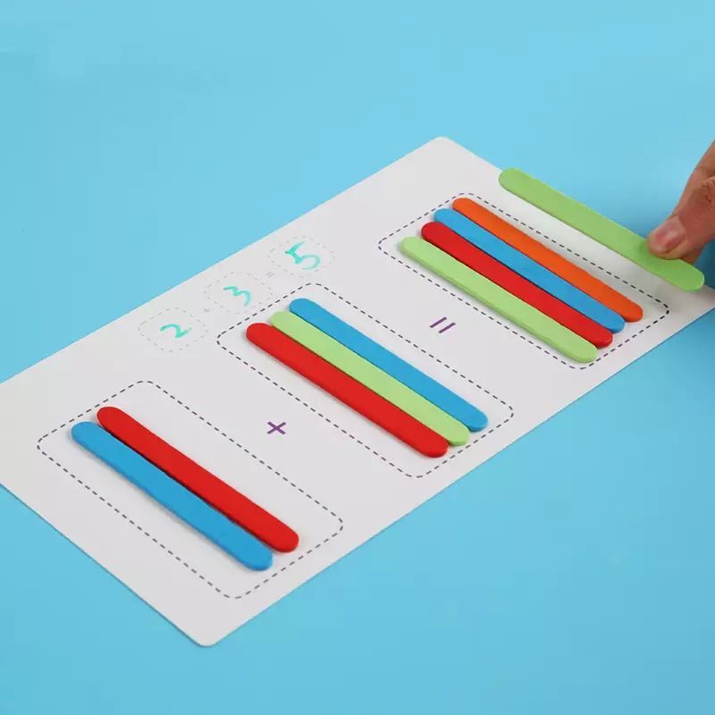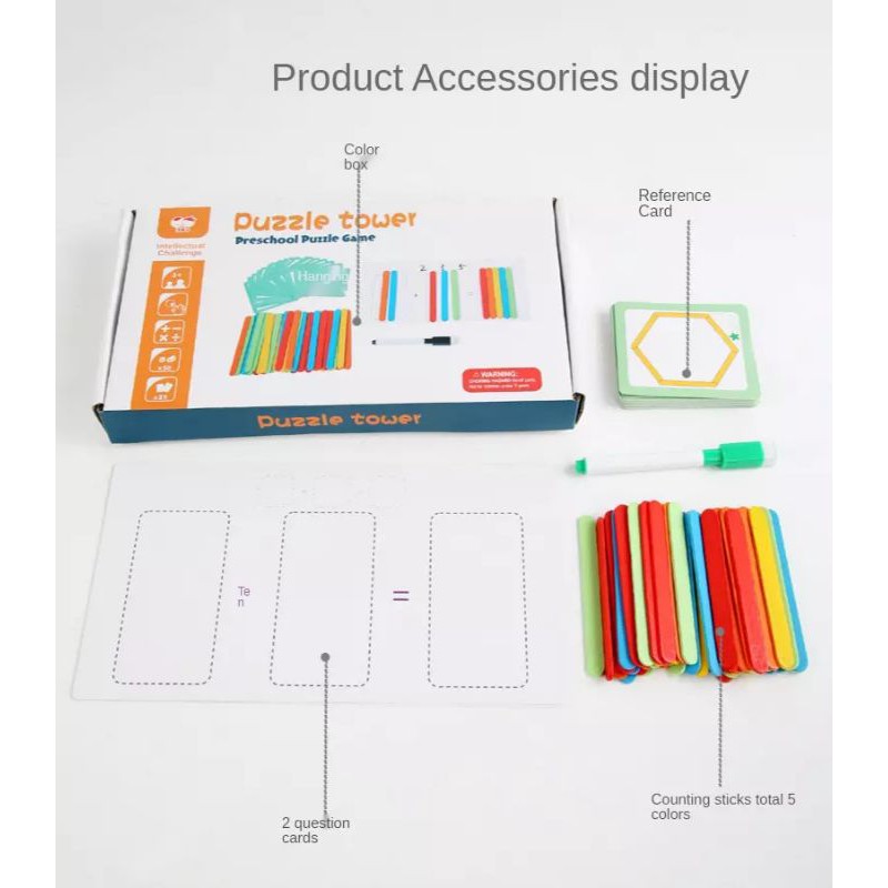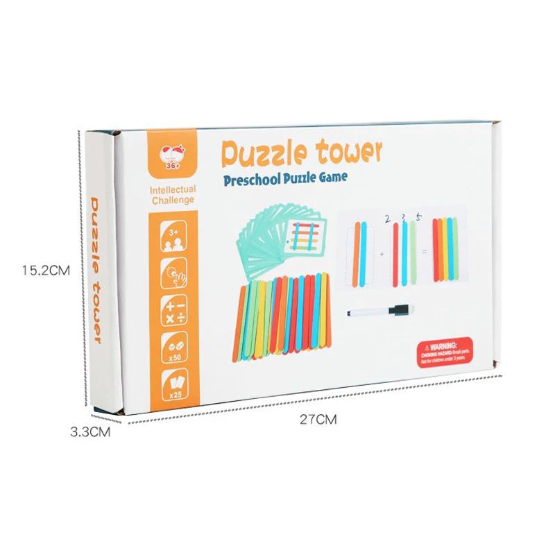 Mainan Montessori Popsicle Stick Pattern / Stik Pola Berhitung + Kartu (PUZZLE TOWER)