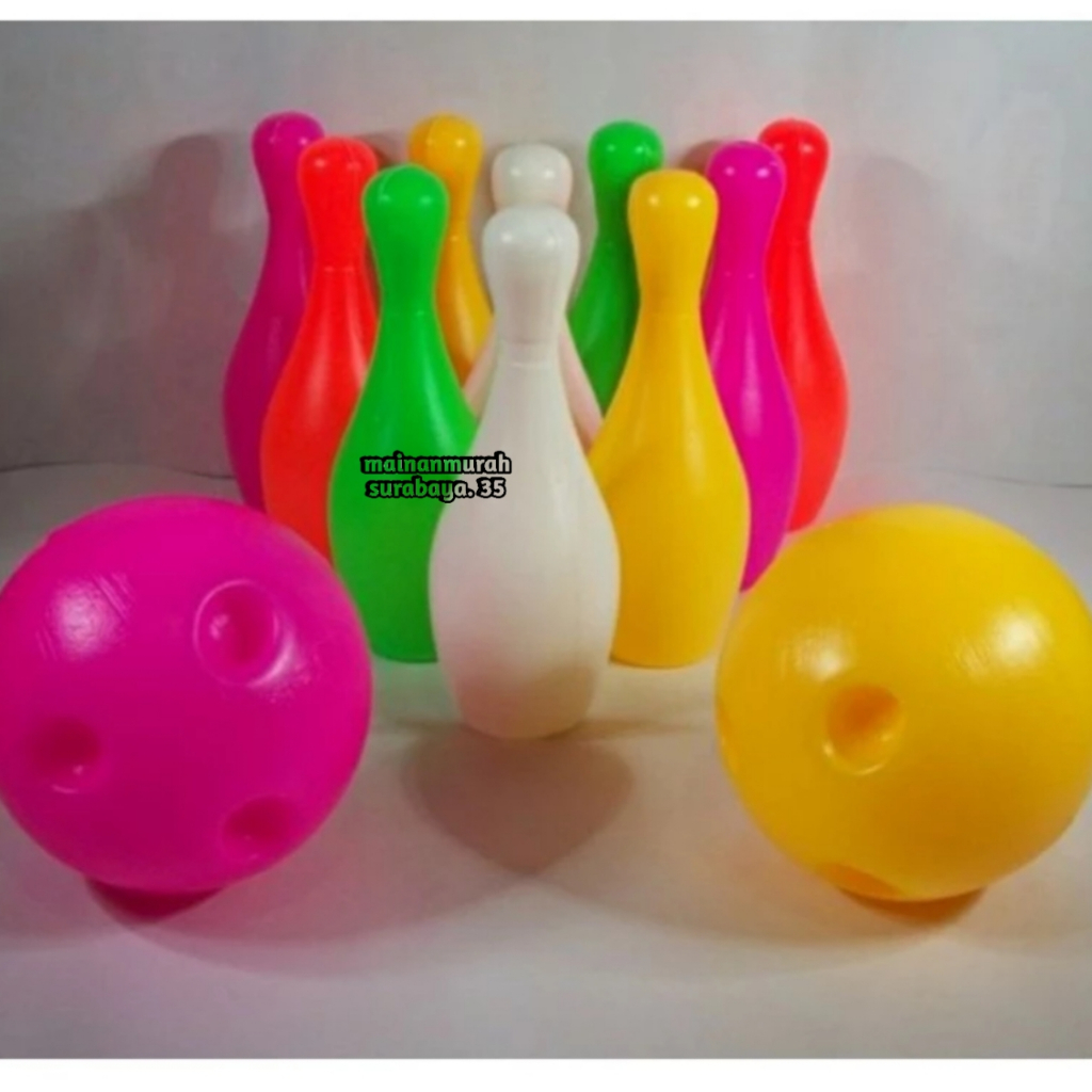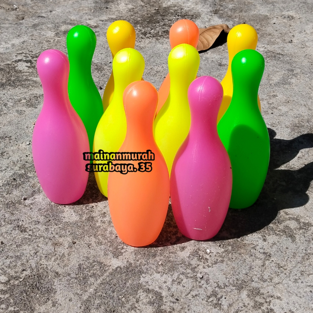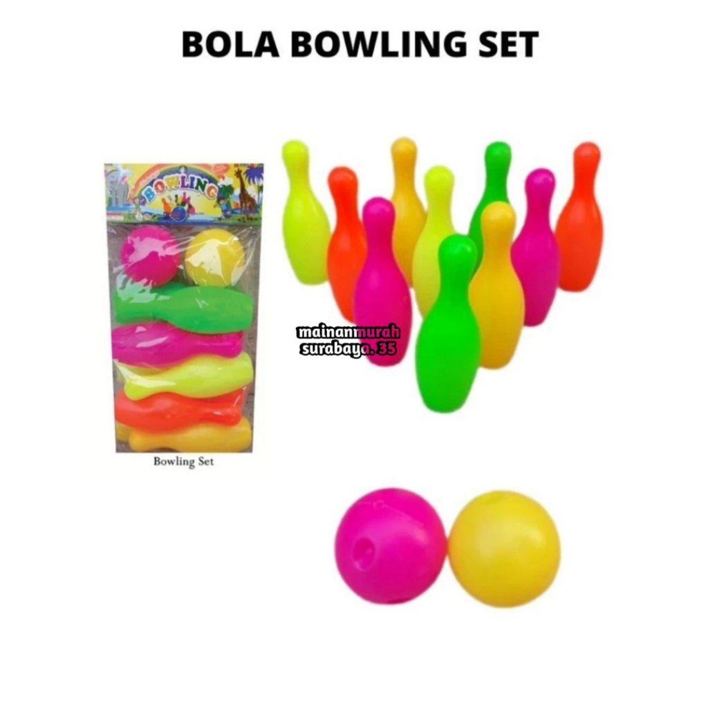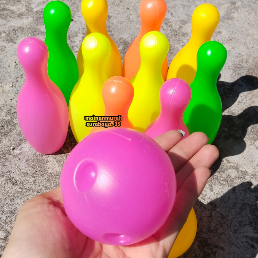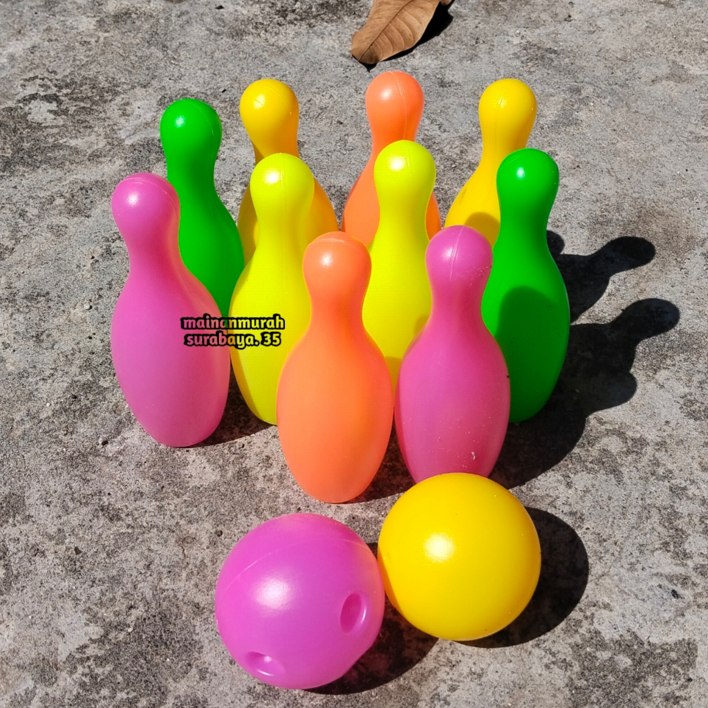 Mainan Olahraga Anak Bowling Set Lengkap Ukuran Sedang 374BWL | Bowling Plastik Mainan Edukasi Anak Berolahraga Kemasan Kantong | Bola Bowling Anak Termurah Isi 10 Warna Warni Cerah