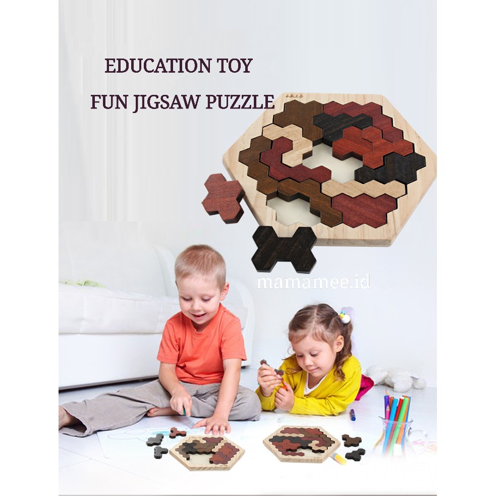 Mainan Puzzle Tangram Jigsaw Heksagonal Sarang Lebah// Puzzle Segi Enam