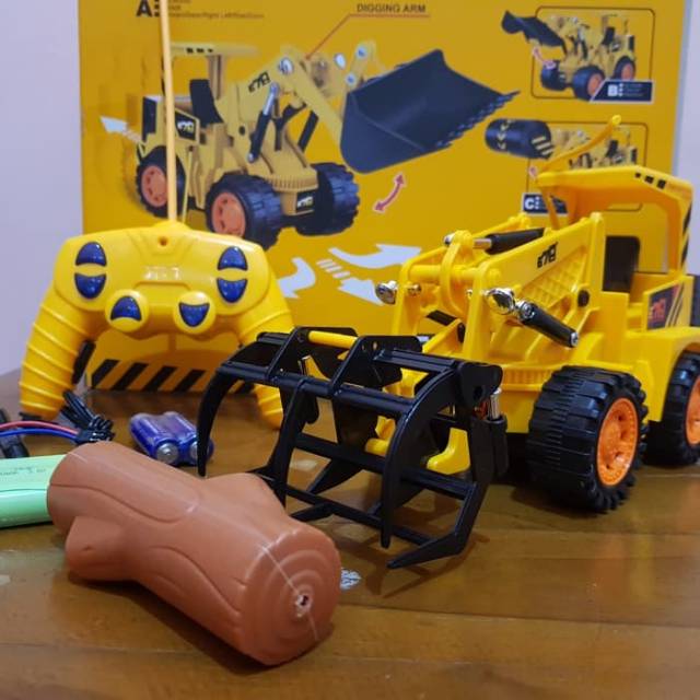 Mainan Remote Control Forklift Traktor Kayu - Mainan Rc Traktor Forklift Kayu