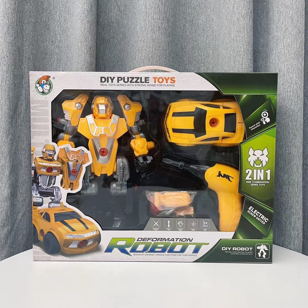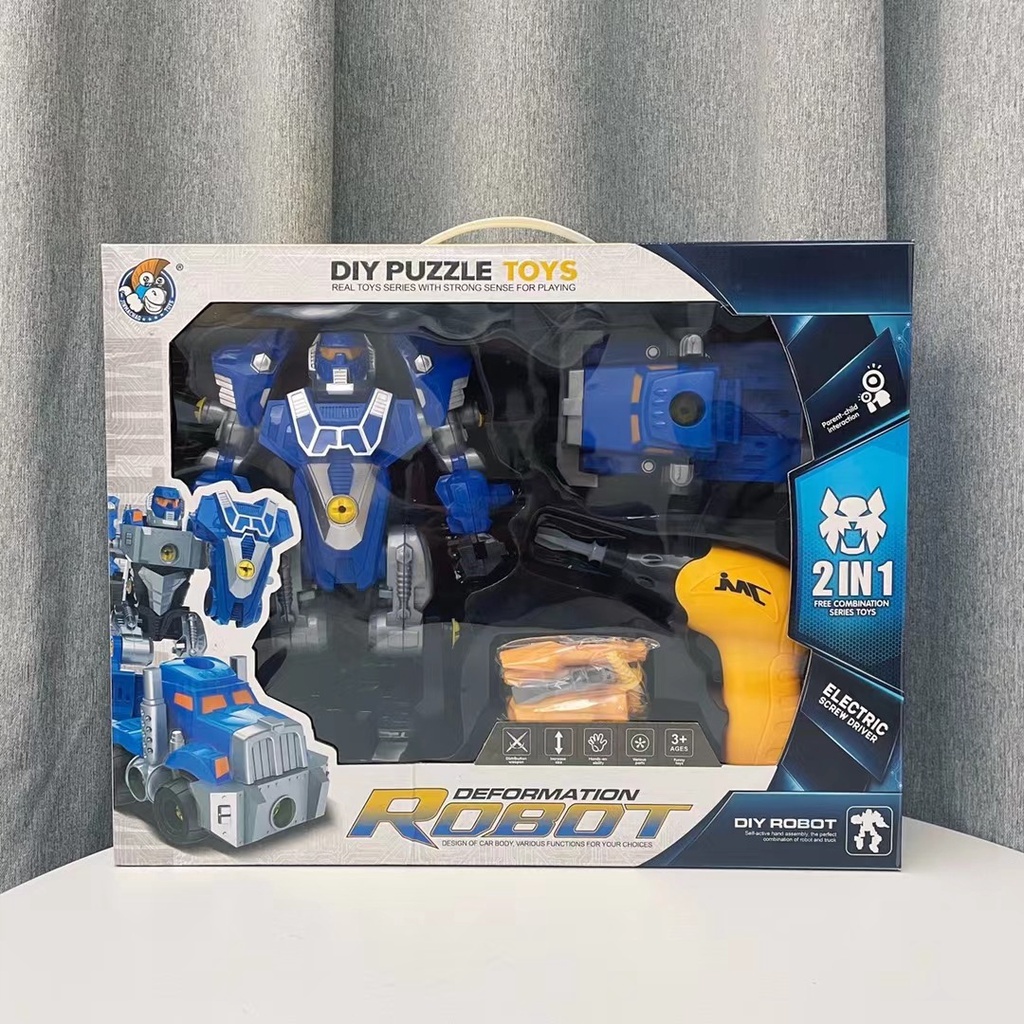 Mainan Robot Anak Laki Laki Robot Deformation 2IN1 DIY Puzzle Toys Mainan Bongkar Pasang Dengan Obeng Listrik / Mainan Mobil Mobilan Stockami M214