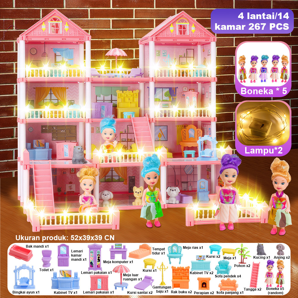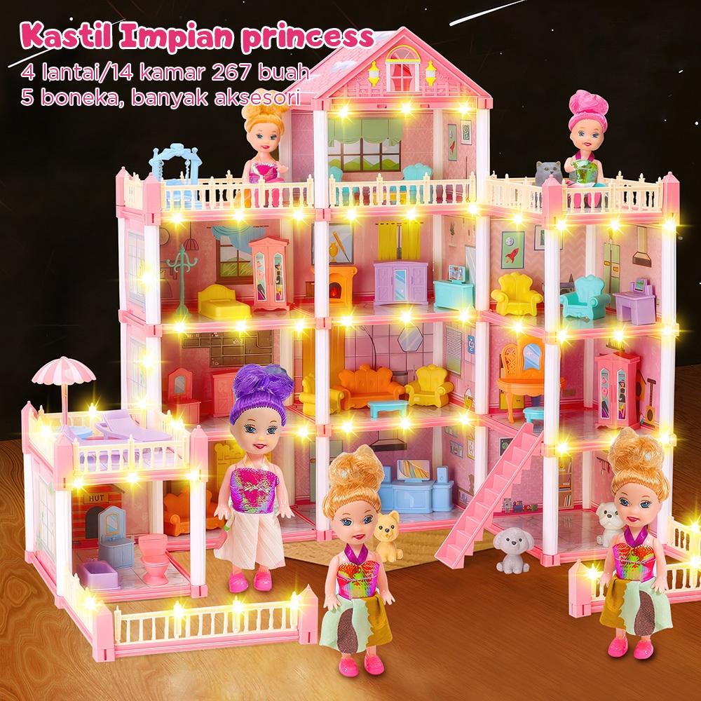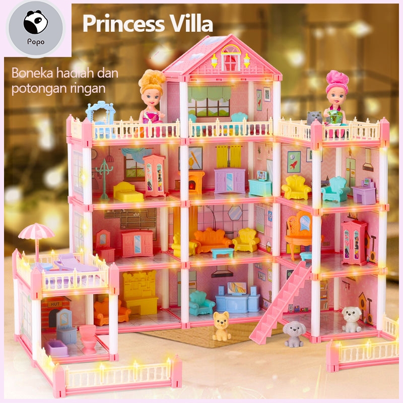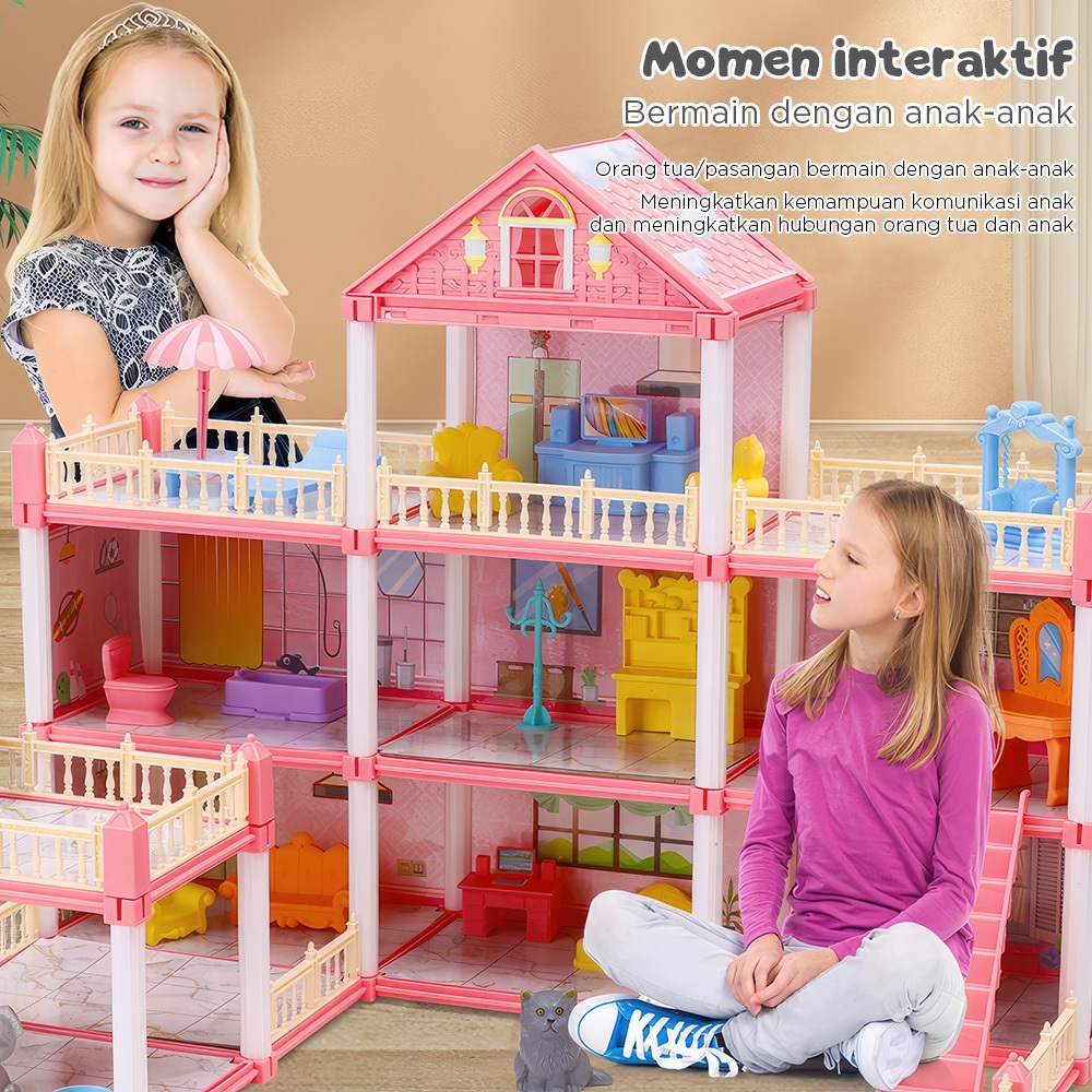 Mainan Rumah Princess Castle 3D Princess Big Villa DIY Rumah Boneka Castle Vila Putri Bercahaya Rumah Rumahan Doll House Play House Bungalow Rumah Boneka Mewah Berpura-pura Bermain Rumah Mainan