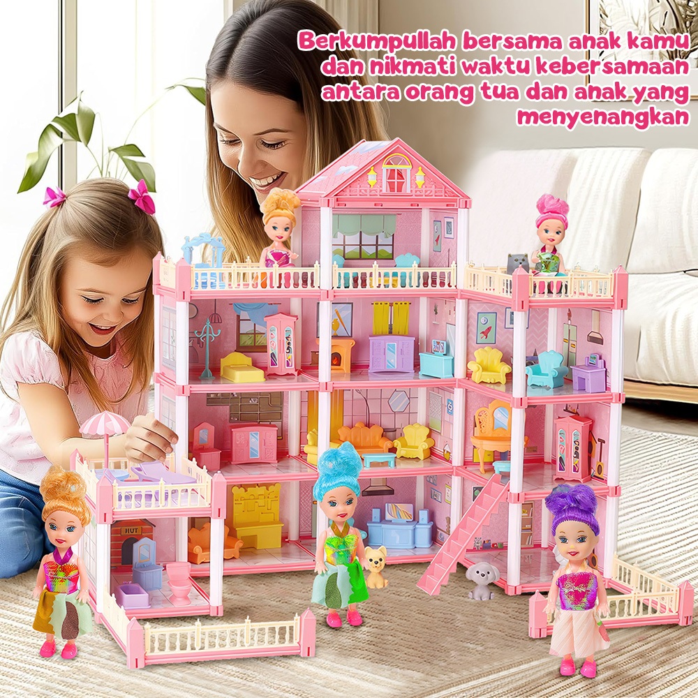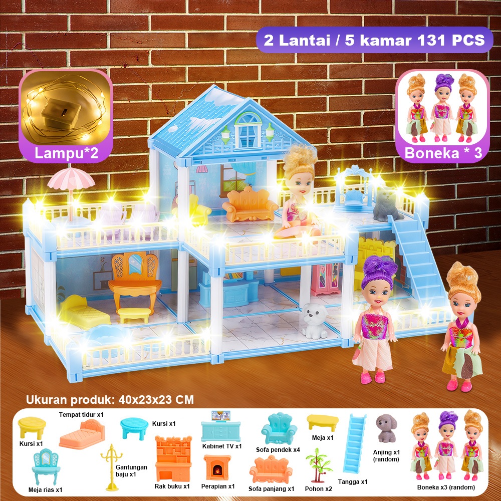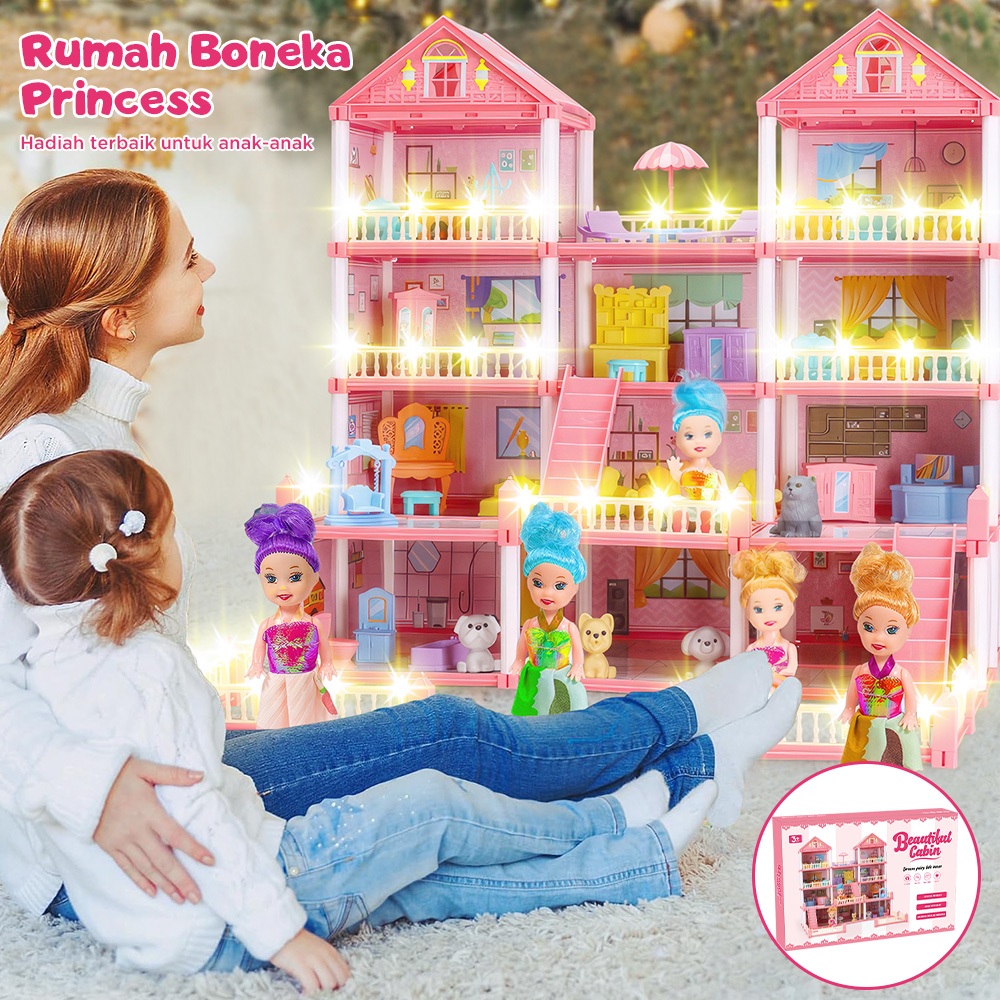 Mainan Rumah Princess Castle 3D Princess Big Villa DIY Rumah Boneka Castle Vila Putri Bercahaya Rumah Rumahan Doll House Play House Bungalow Rumah Boneka Mewah Berpura-pura Bermain Rumah Mainan