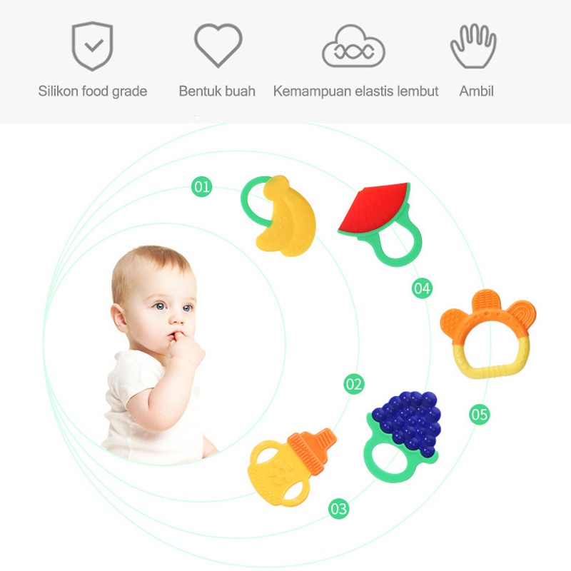 Mainan/Teether bayi/Gigitan bayi teether/Mainan gigitan bayi/Penumbuh gigi buah (B221)
