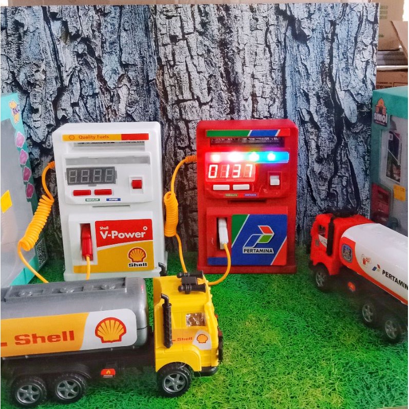 Mainan Terbaru Pom Bensin Mini SPBU Pertamina v-Power Shell Ada Lampu LED Angka & Suara Menggunakan Baterai AA Bahan Plastik Berkualitas SNI Original Produk Merek RKC