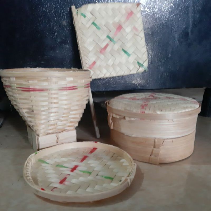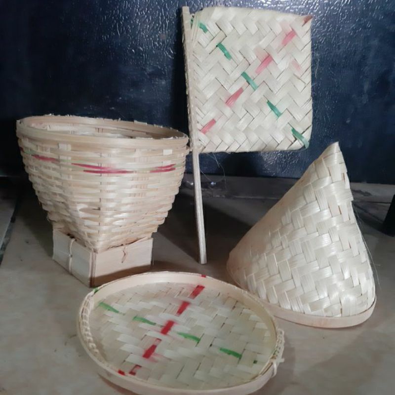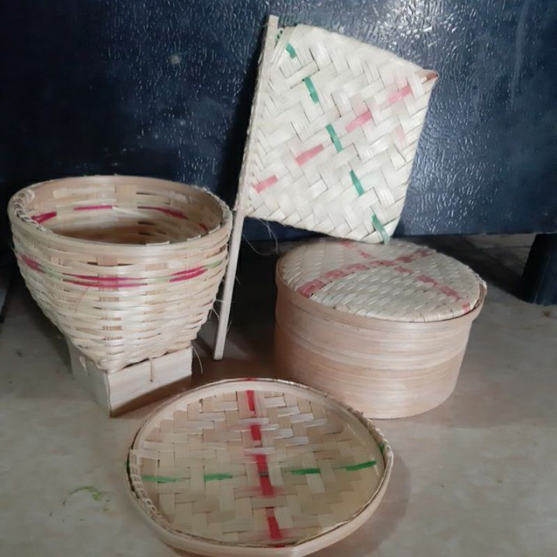Mainan Tradisional Anak terbuat dari Anyaman Bambu (4 in1) Free Mainan Piring Tanah Liat