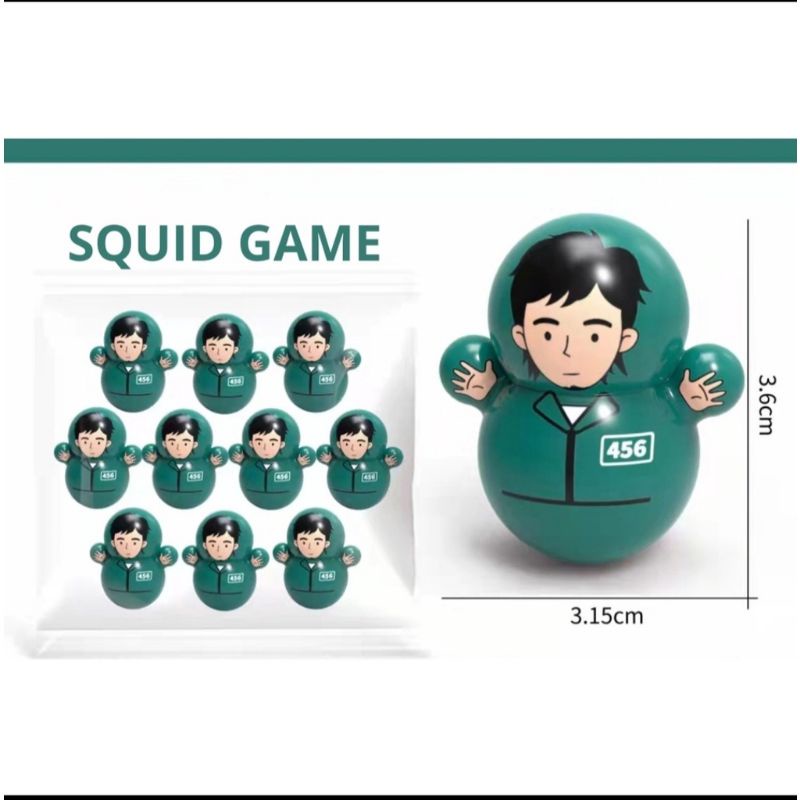 Mainan Tumbler berayun boneka goyang squid game Mainan boneka viral kecil mainan karater squid game doraeman dan pikachu