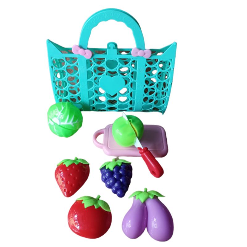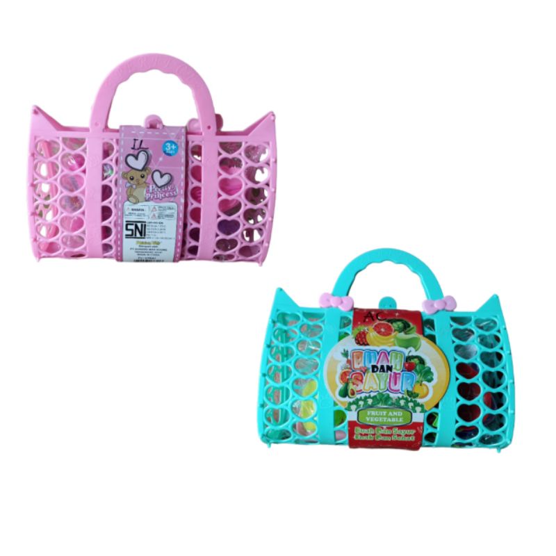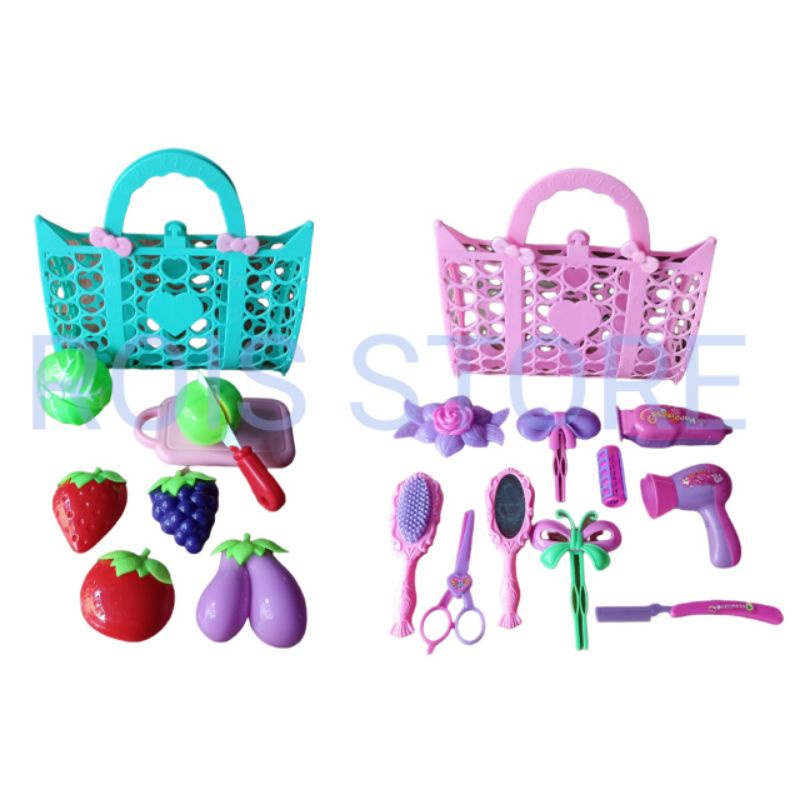 Mainan anak cewek keranjang make up dan keranjang buah potong
