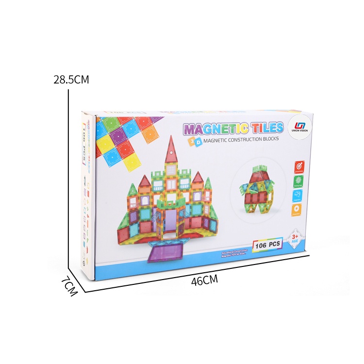 Mainan anak edukasi - magnetic tiles building - mainan magnet blocks - balok magnet 106 pcs