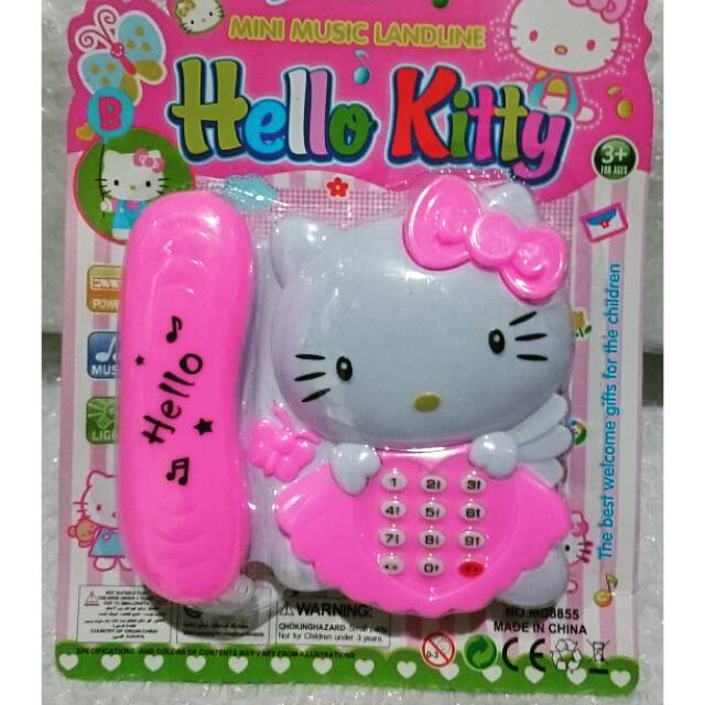 Mainan anak telepon bentuk hello kitty telf telpon rumah ada musik lampu